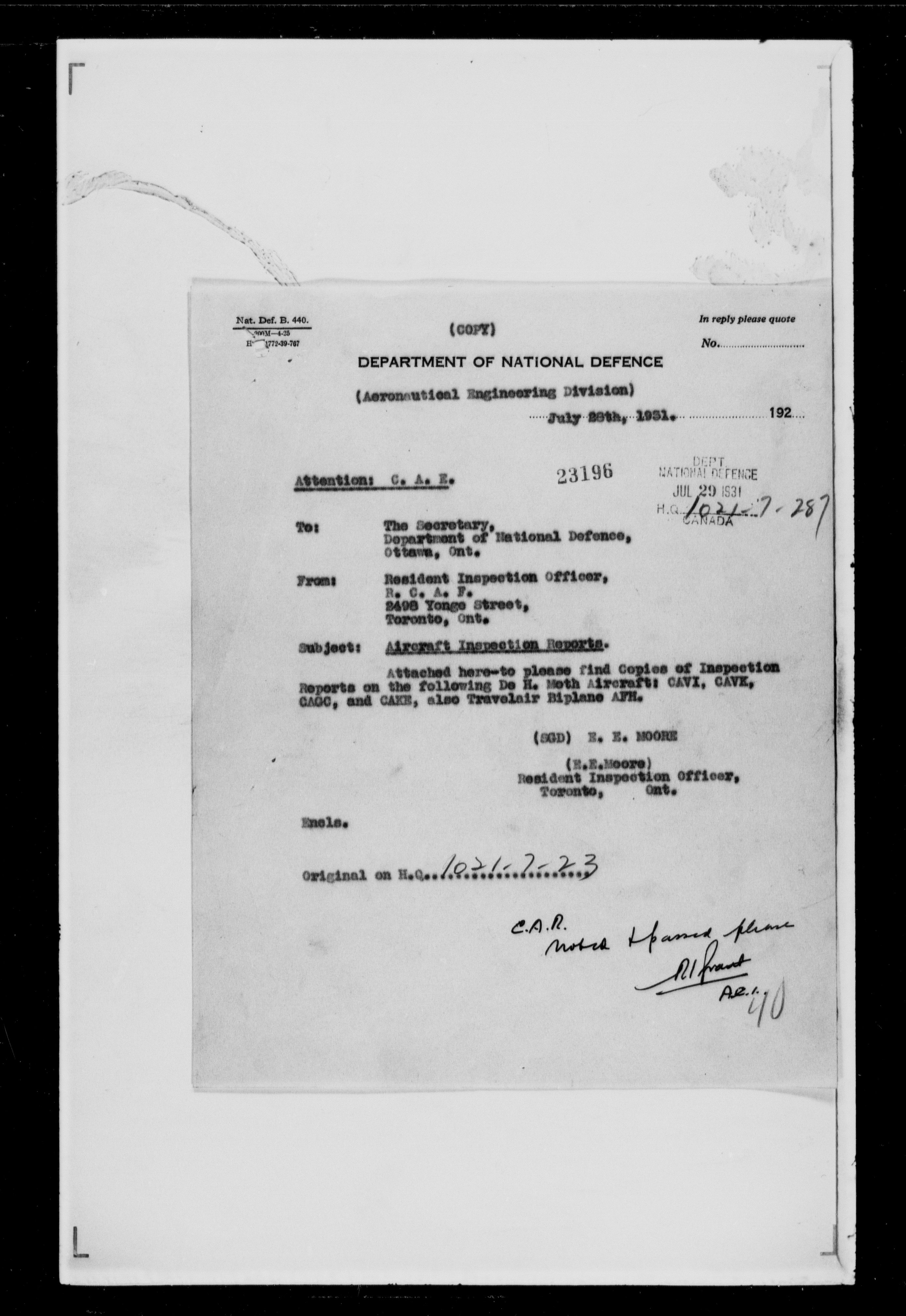 Department of Transport : Civil aircraft registration, inspection and operation files, block 5008, 1920-1986 - 7423