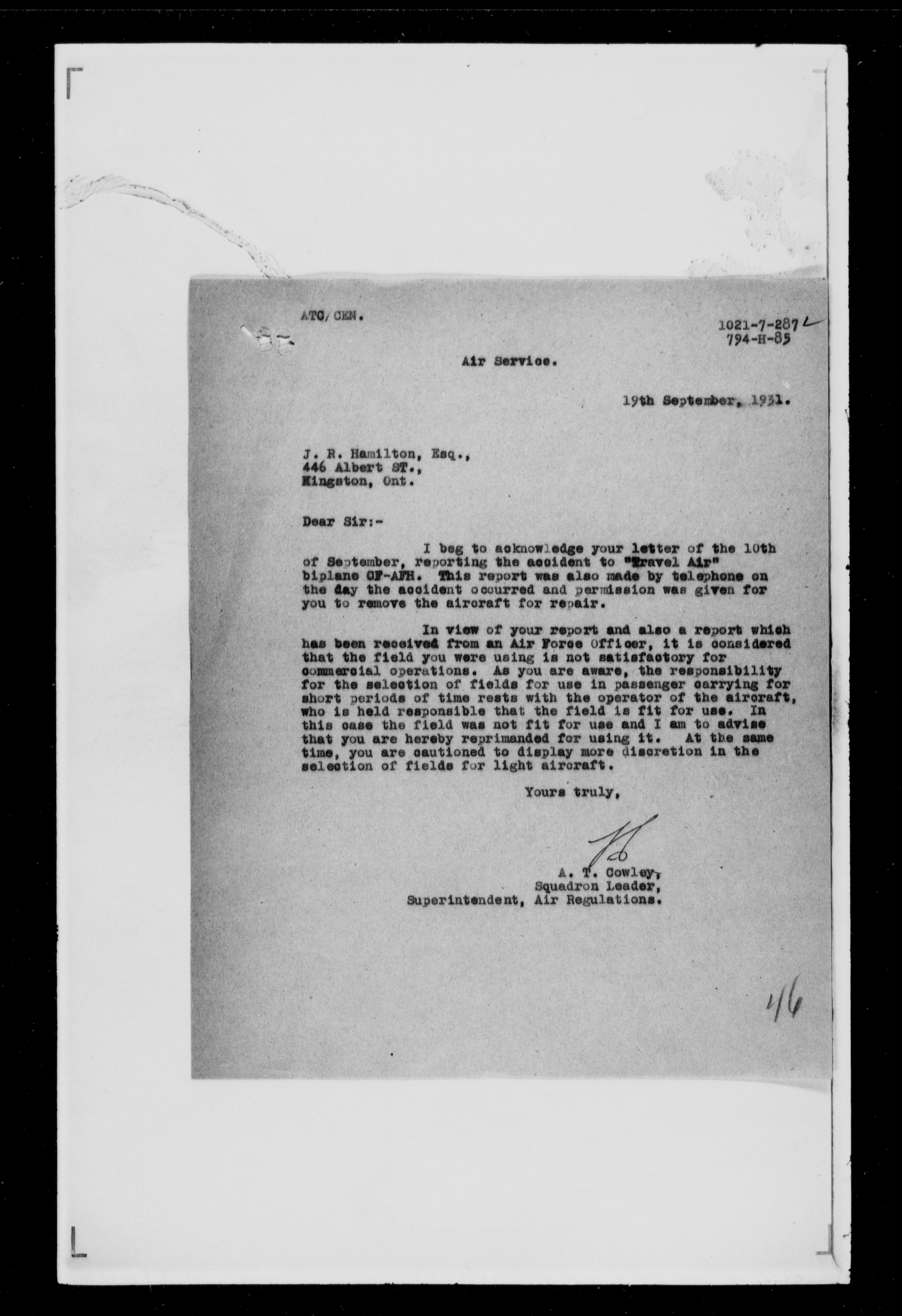 Department of Transport : Civil aircraft registration, inspection and operation files, block 5008, 1920-1986 - 7423