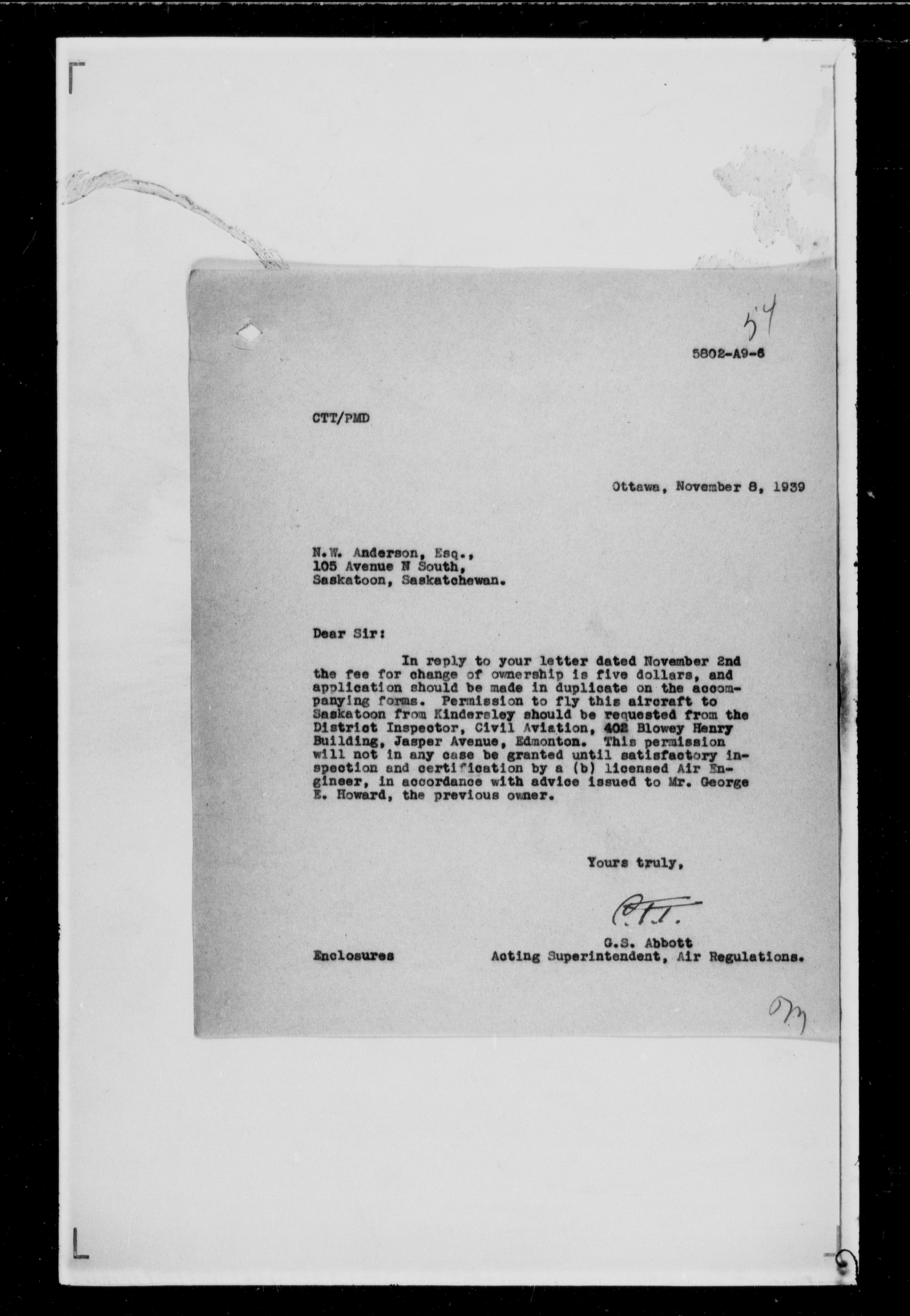 Department of Transport : Civil aircraft registration, inspection and operation files, block 5008, 1920-1986 - 7426