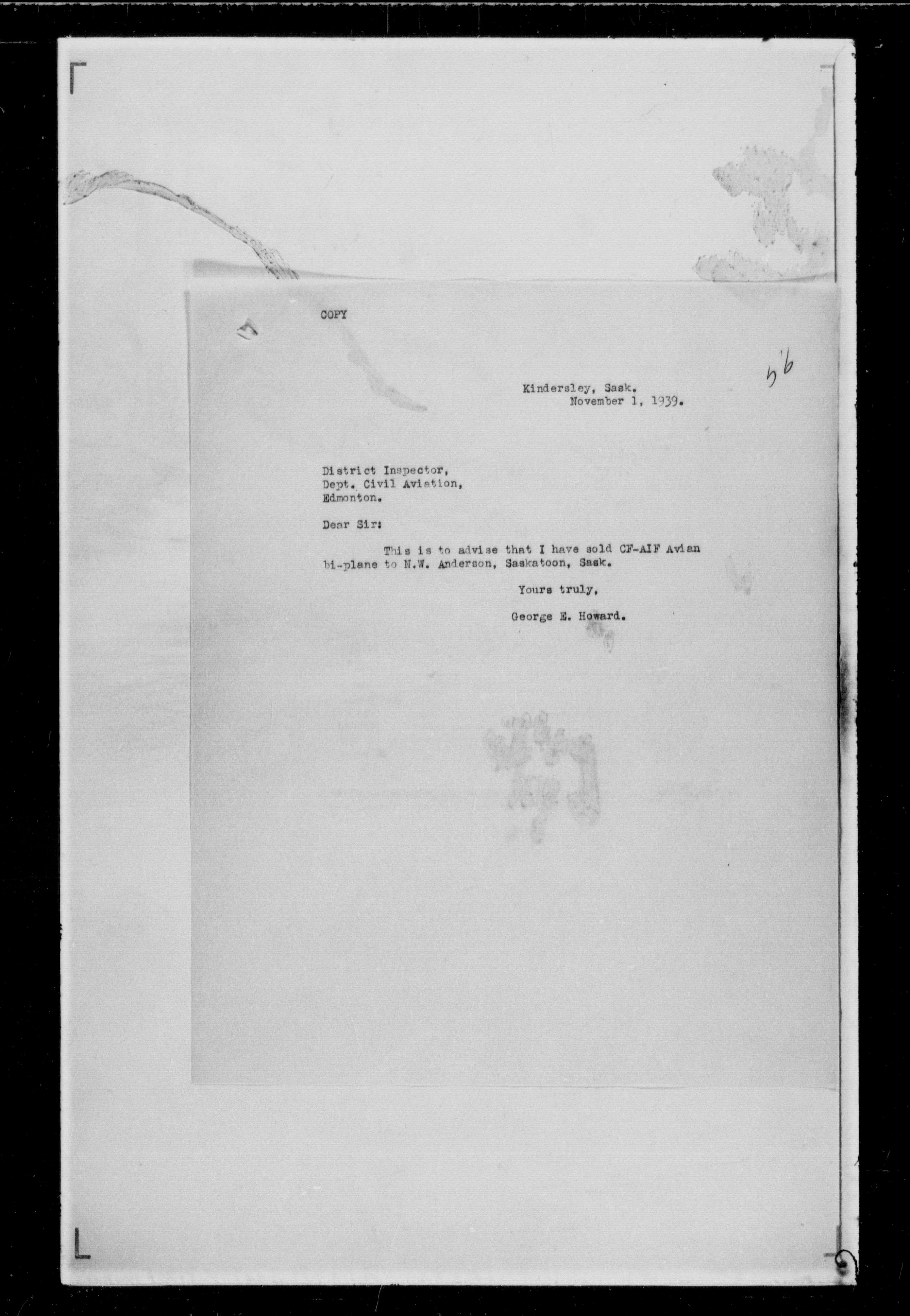 Department of Transport : Civil aircraft registration, inspection and operation files, block 5008, 1920-1986 - 7426