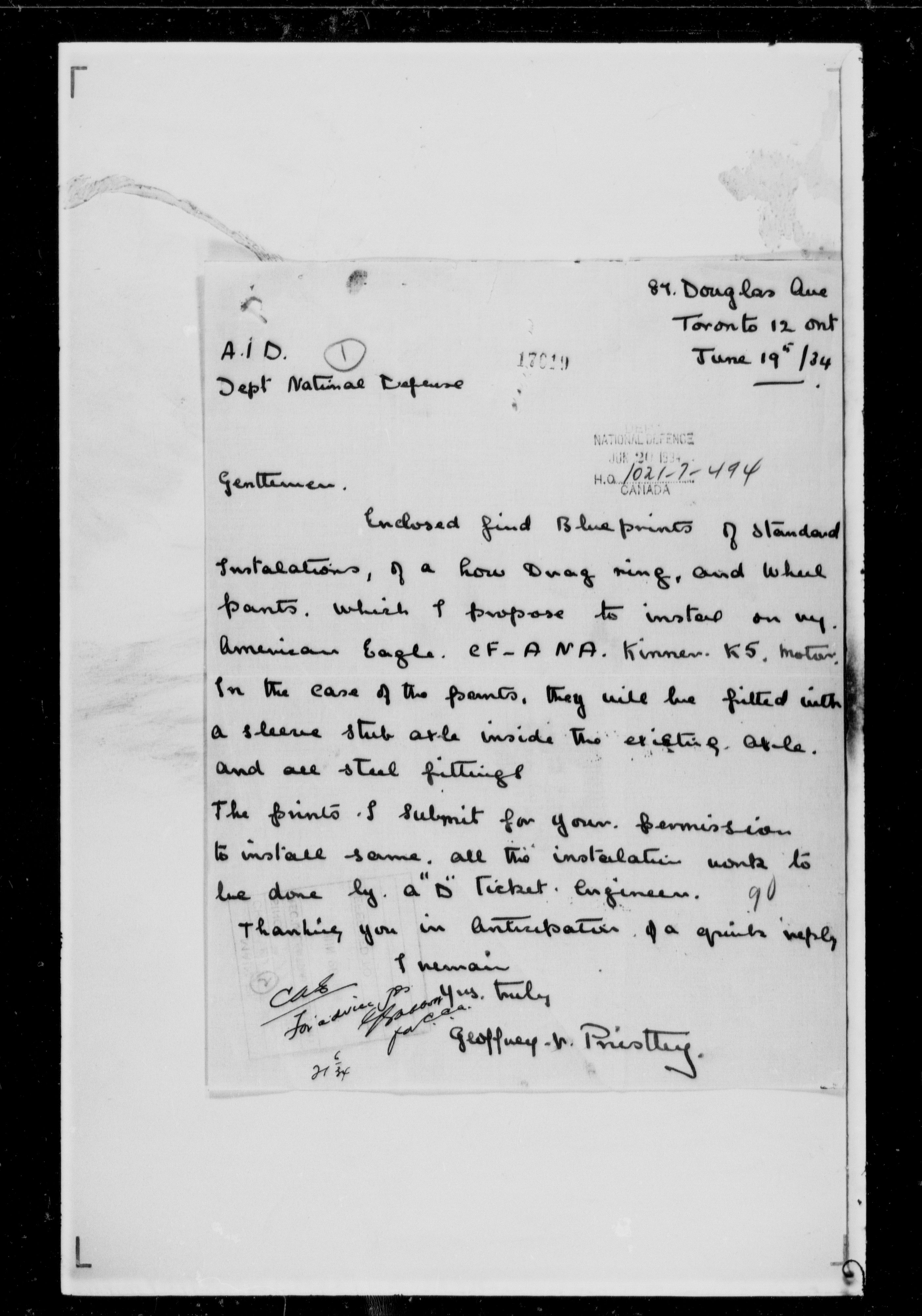 Department of Transport : Civil aircraft registration, inspection and operation files, block 5008, 1920-1986 - 7430
