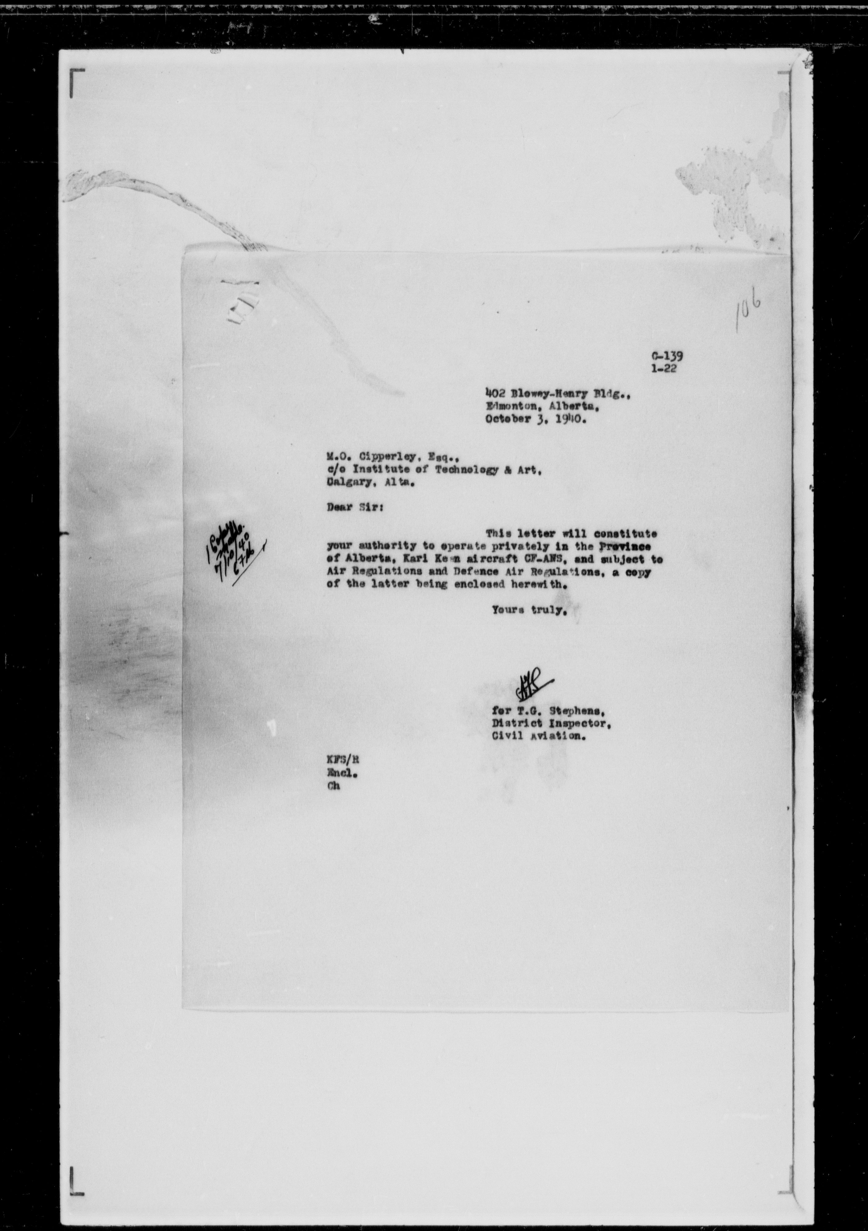 Department of Transport : Civil aircraft registration, inspection and operation files, block 5008, 1920-1986 - 7431