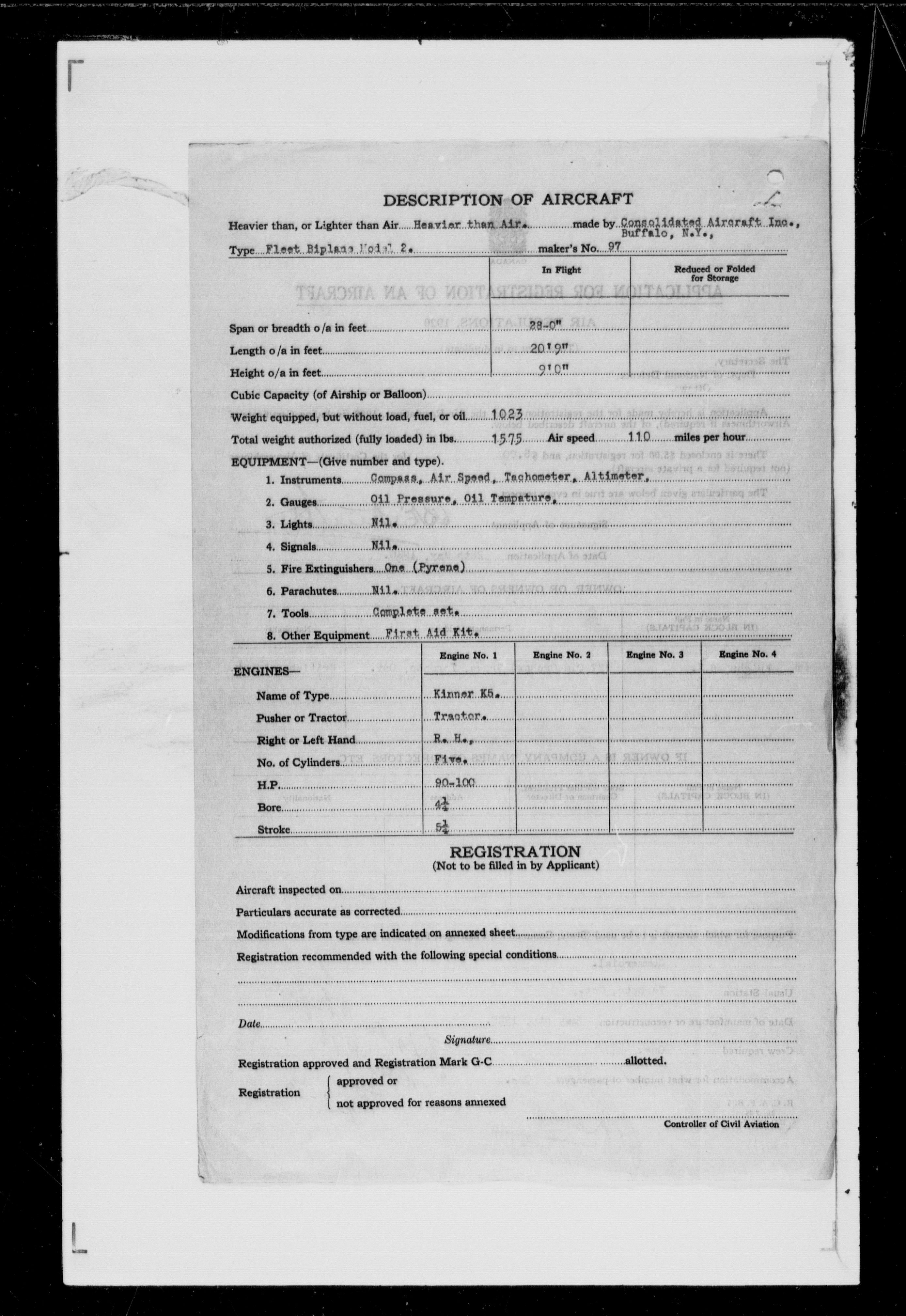 Department of Transport : Civil aircraft registration, inspection and operation files, block 5008, 1920-1986 - 7431