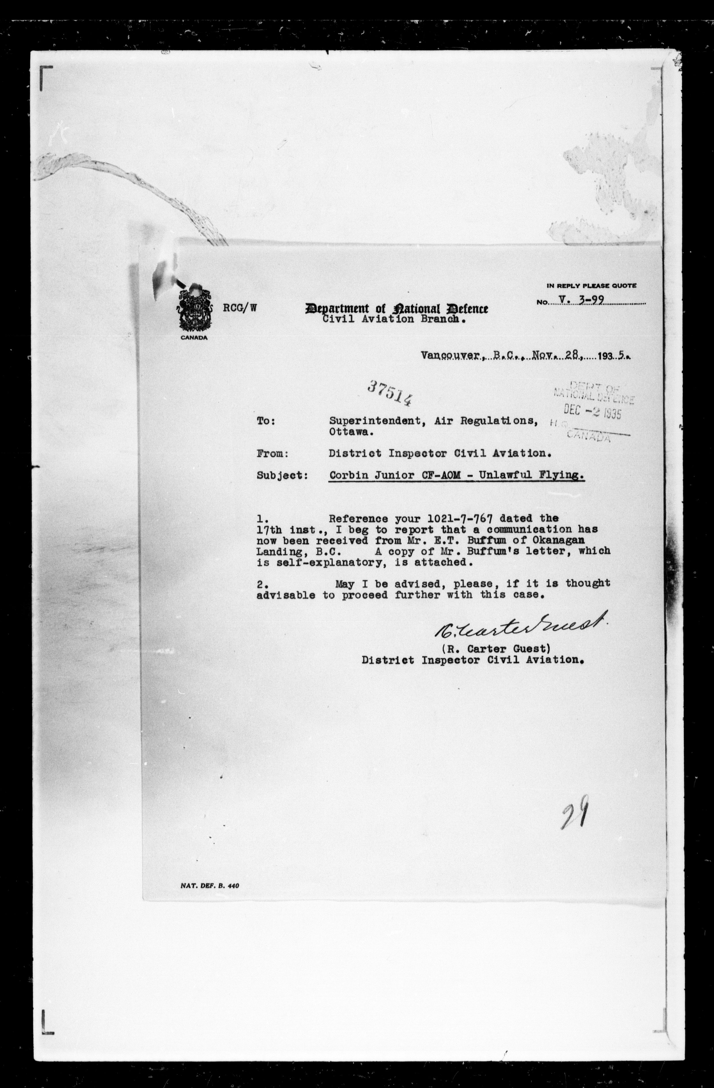 Department of Transport : Civil aircraft registration, inspection and operation files, block 5008, 1920-1986 - 7432