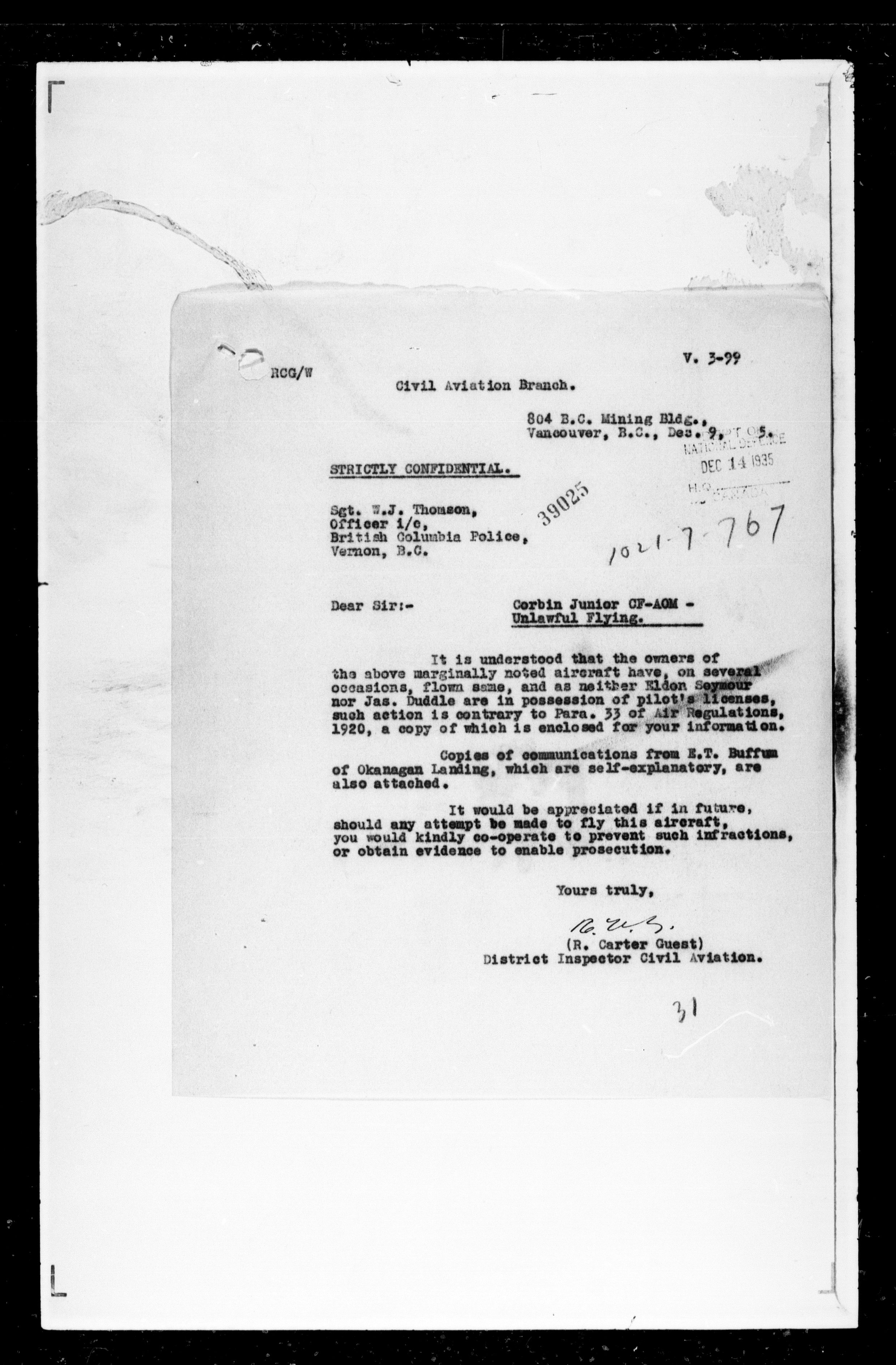 Department of Transport : Civil aircraft registration, inspection and operation files, block 5008, 1920-1986 - 7432