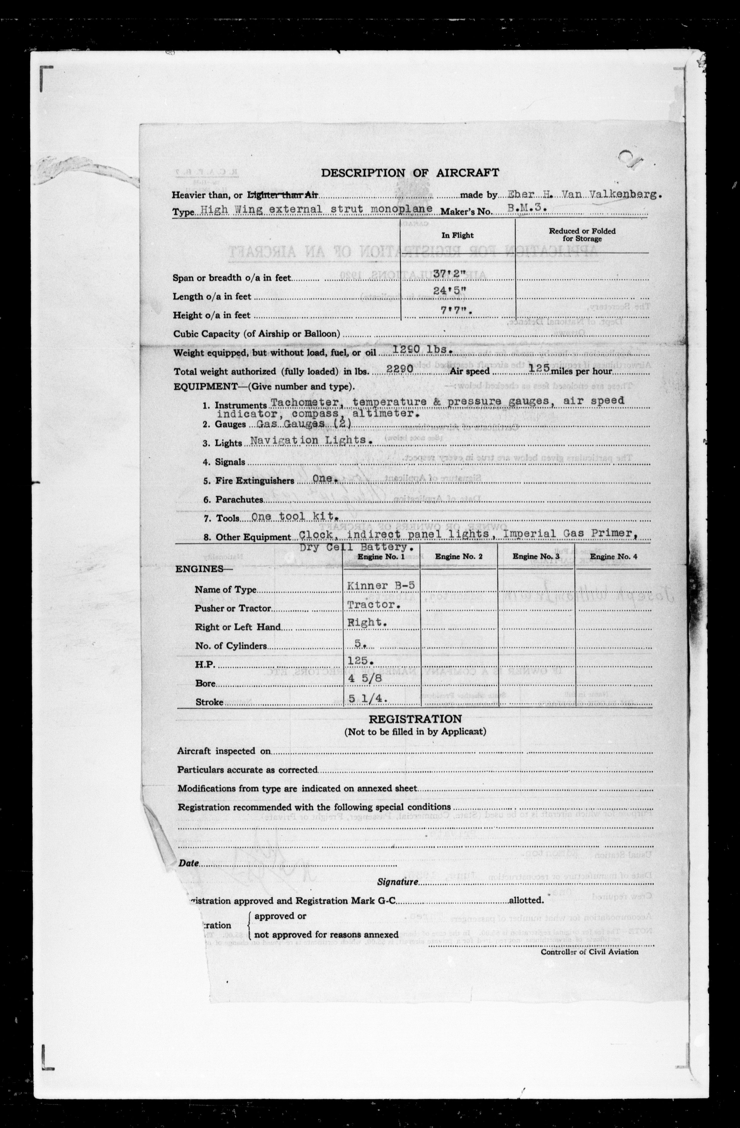 Department of Transport : Civil aircraft registration, inspection and operation files, block 5008, 1920-1986 - 7433