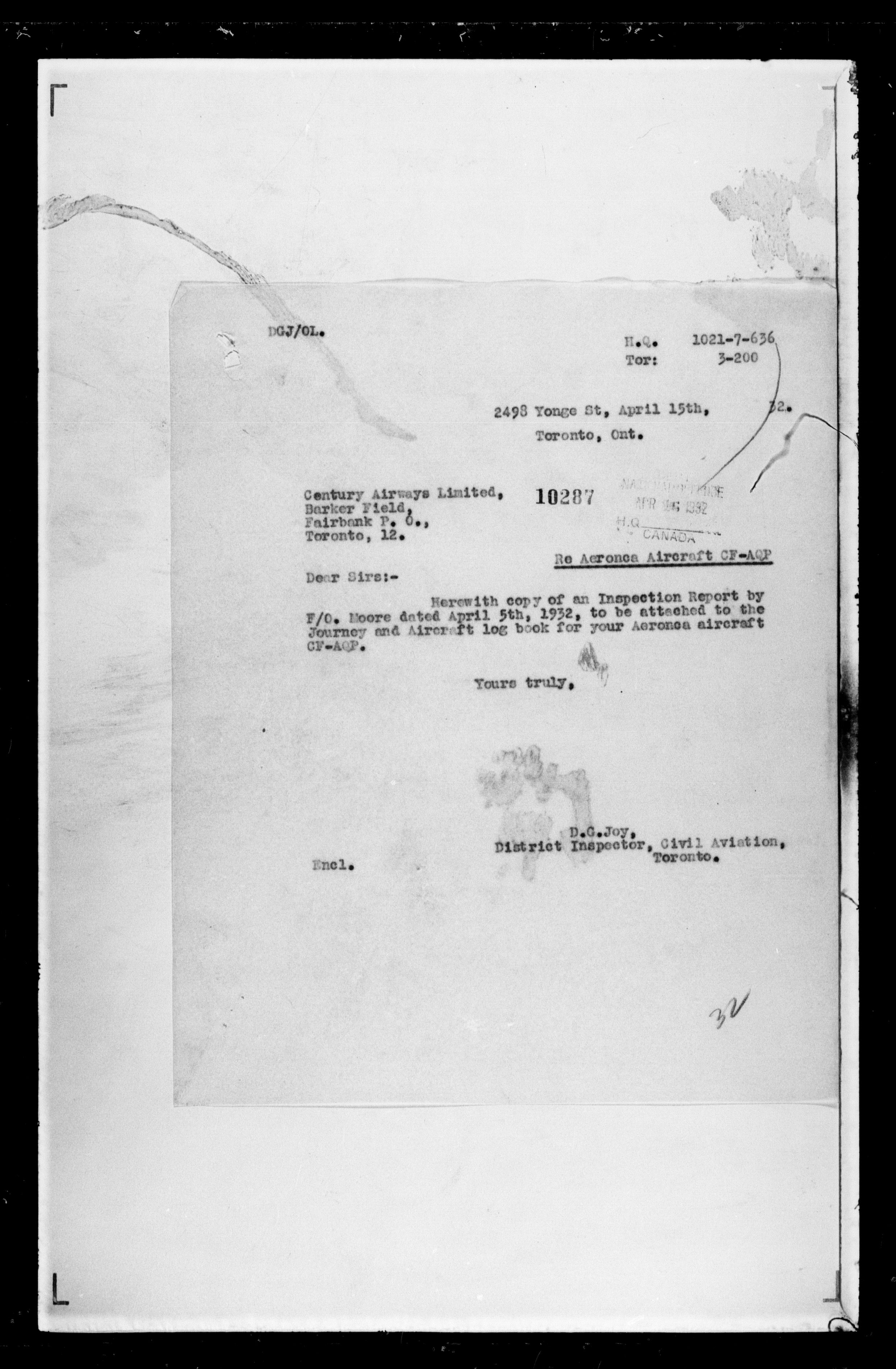 Department of Transport : Civil aircraft registration, inspection and operation files, block 5008, 1920-1986 - 7436