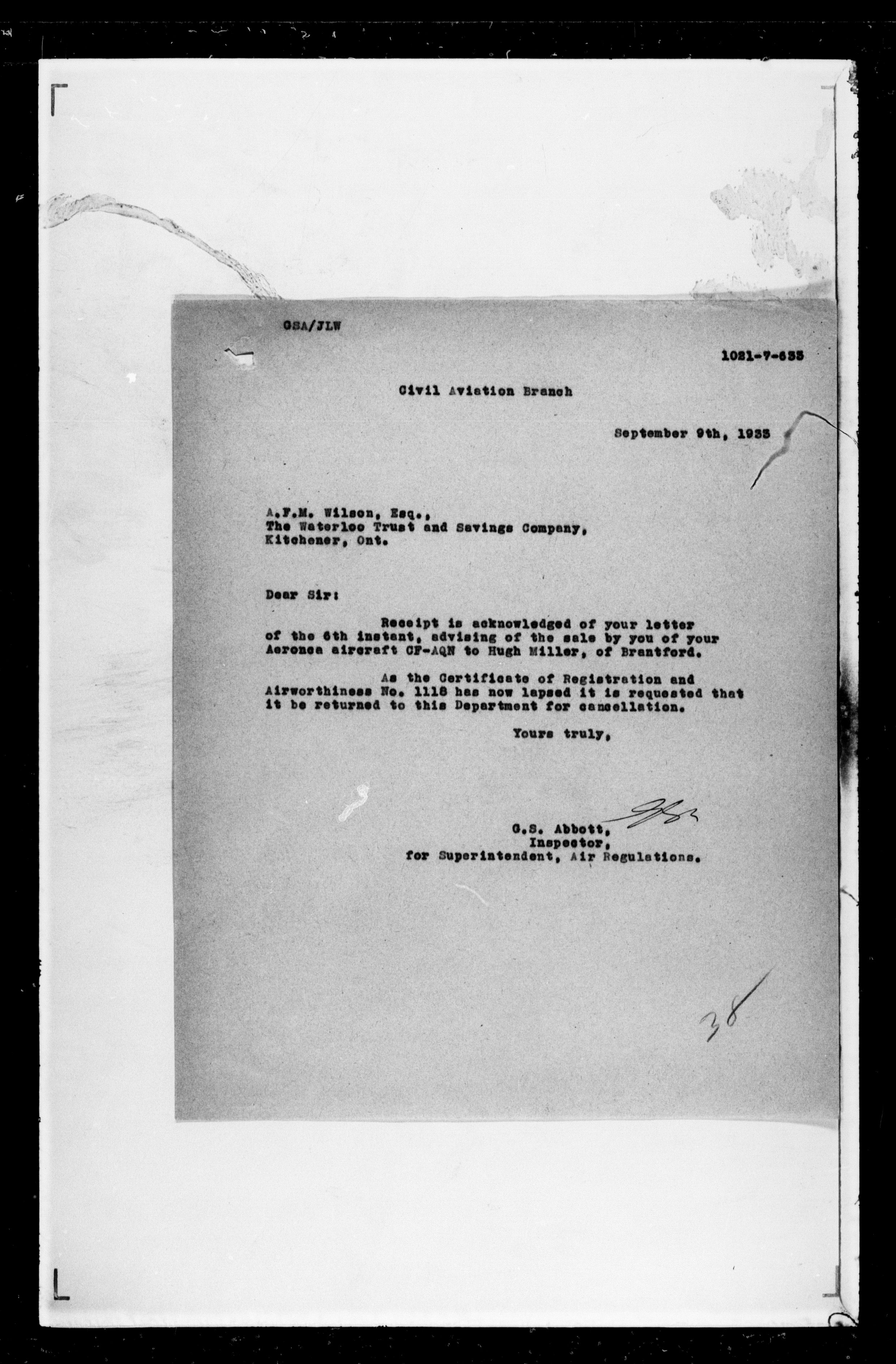 Department of Transport : Civil aircraft registration, inspection and operation files, block 5008, 1920-1986 - 7436