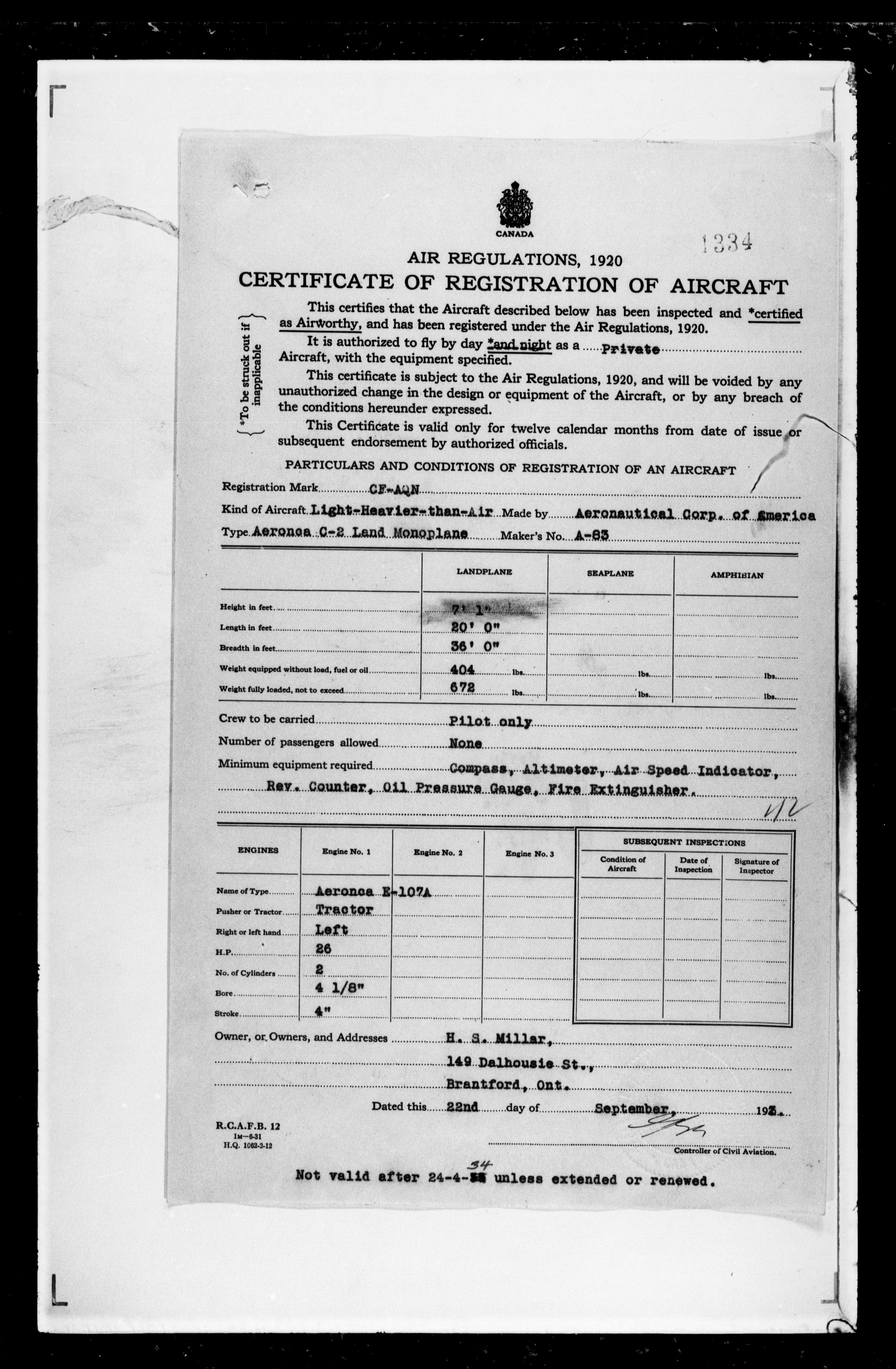 Department of Transport : Civil aircraft registration, inspection and operation files, block 5008, 1920-1986 - 7436