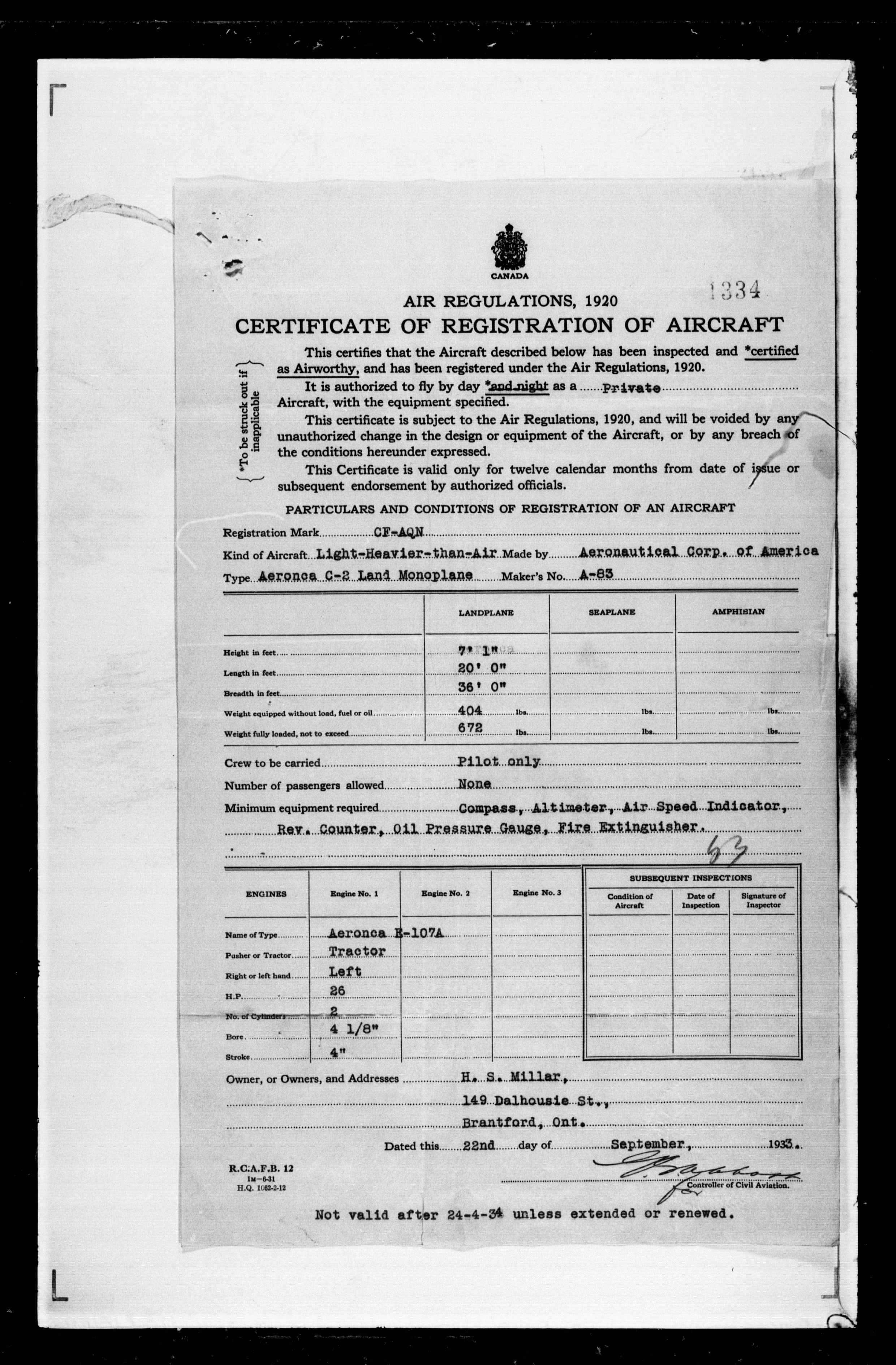 Department of Transport : Civil aircraft registration, inspection and operation files, block 5008, 1920-1986 - 7436