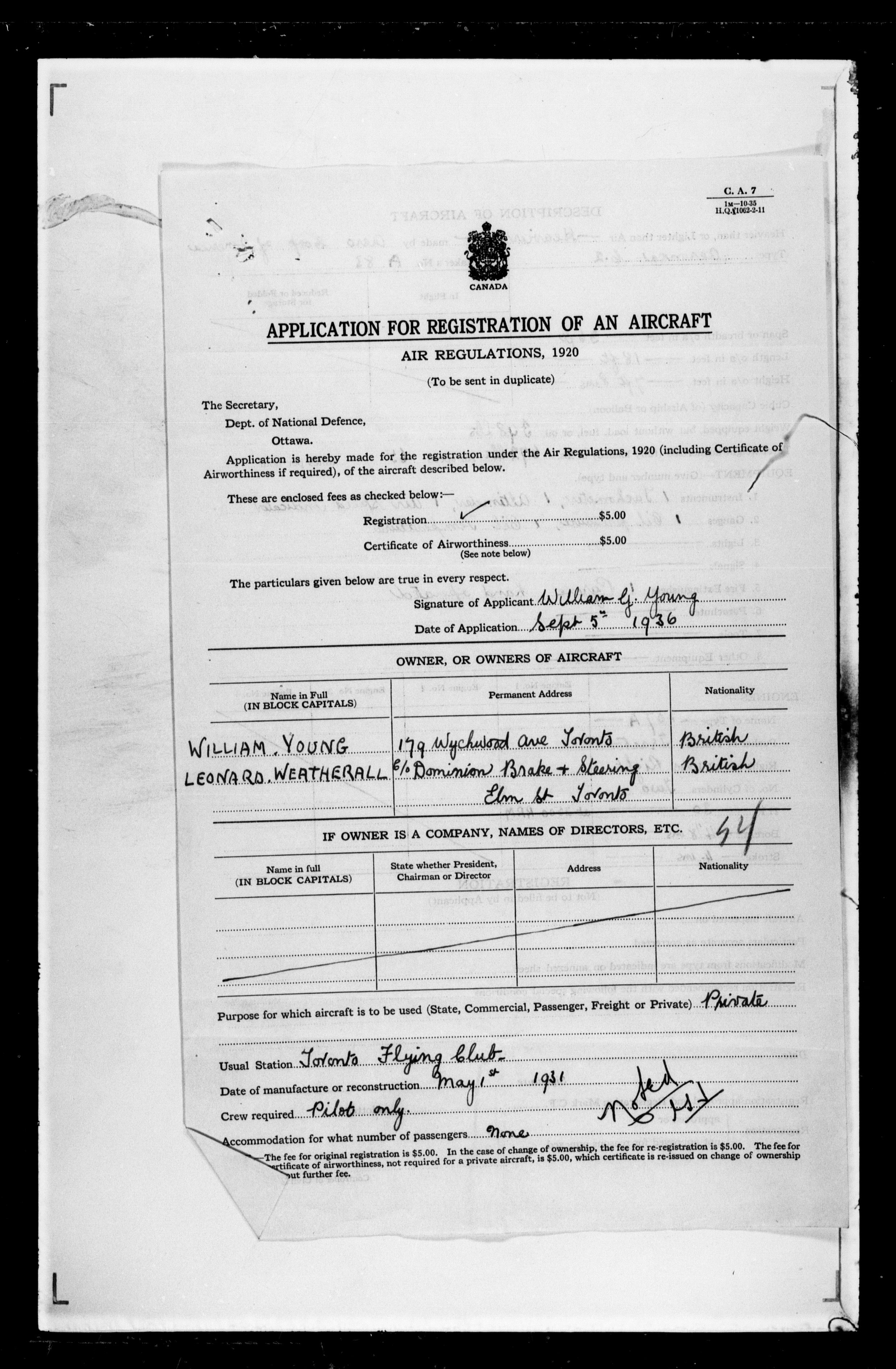 Department of Transport : Civil aircraft registration, inspection and operation files, block 5008, 1920-1986 - 7436