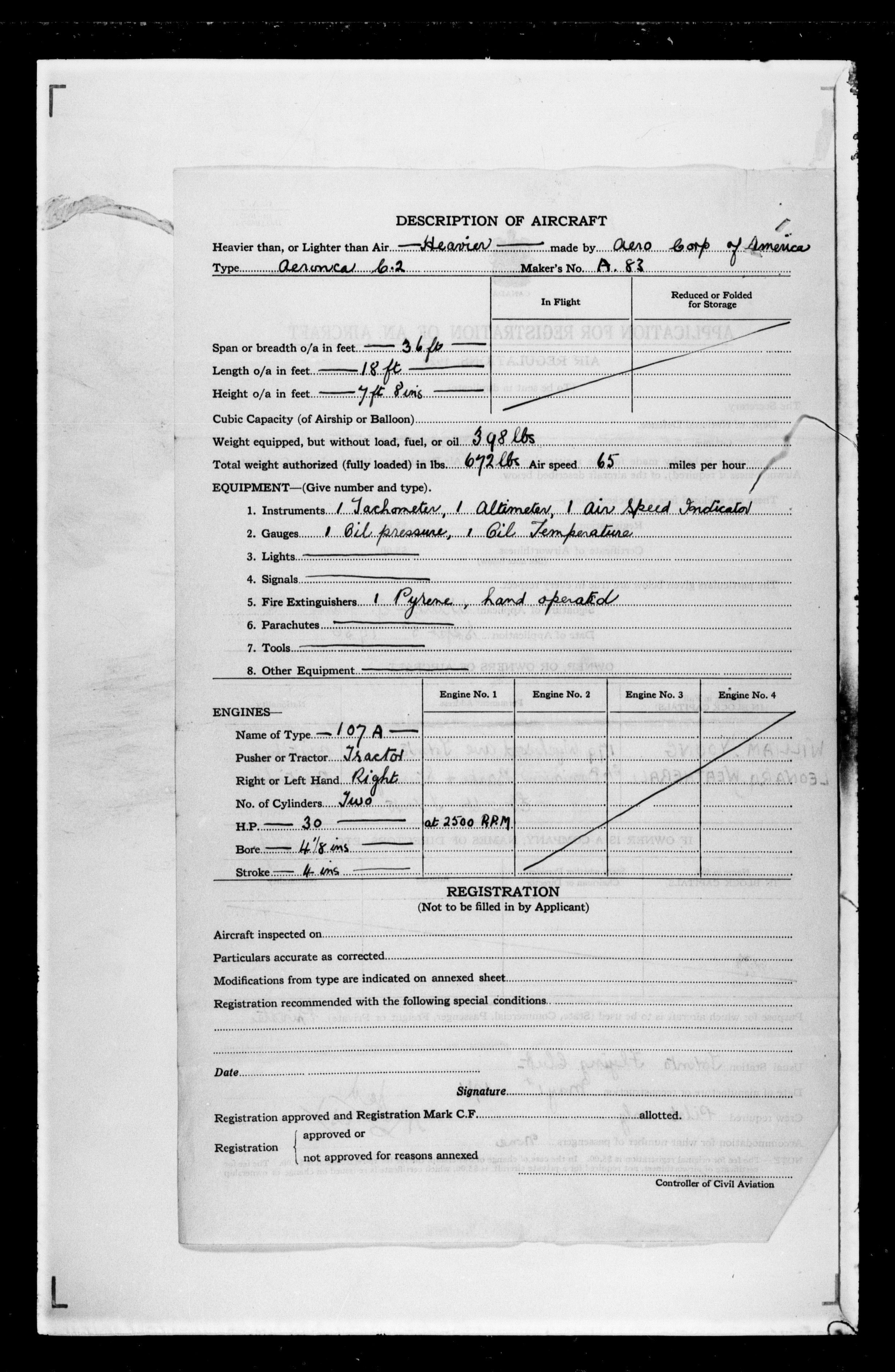 Department of Transport : Civil aircraft registration, inspection and operation files, block 5008, 1920-1986 - 7436
