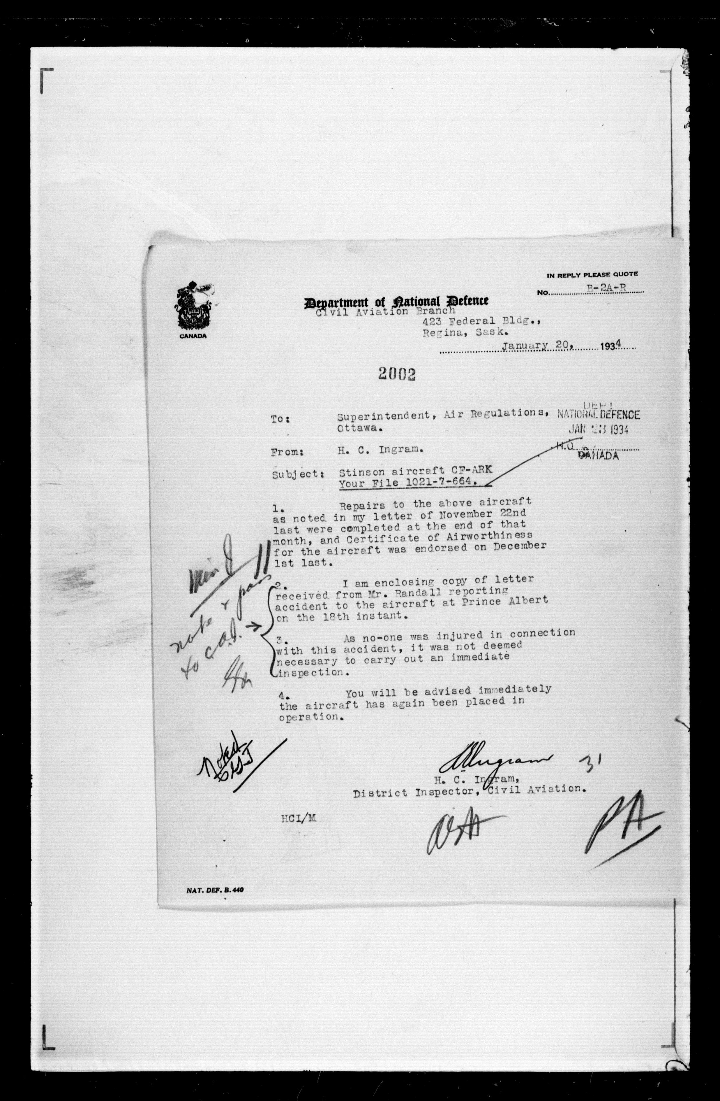 Department of Transport : Civil aircraft registration, inspection and operation files, block 5008, 1920-1986 - 7437