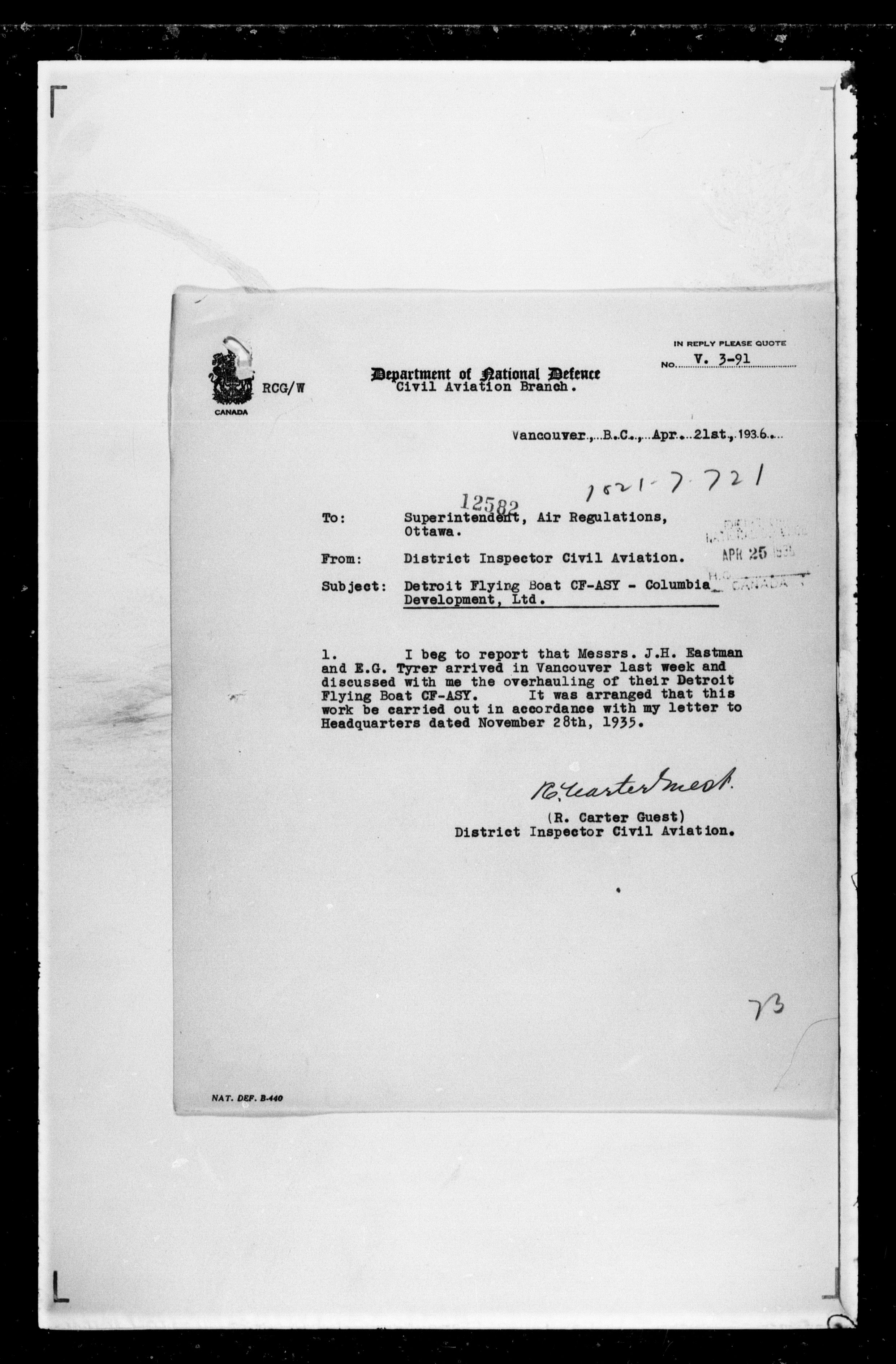 Department of Transport : Civil aircraft registration, inspection and operation files, block 5008, 1920-1986 - 7438