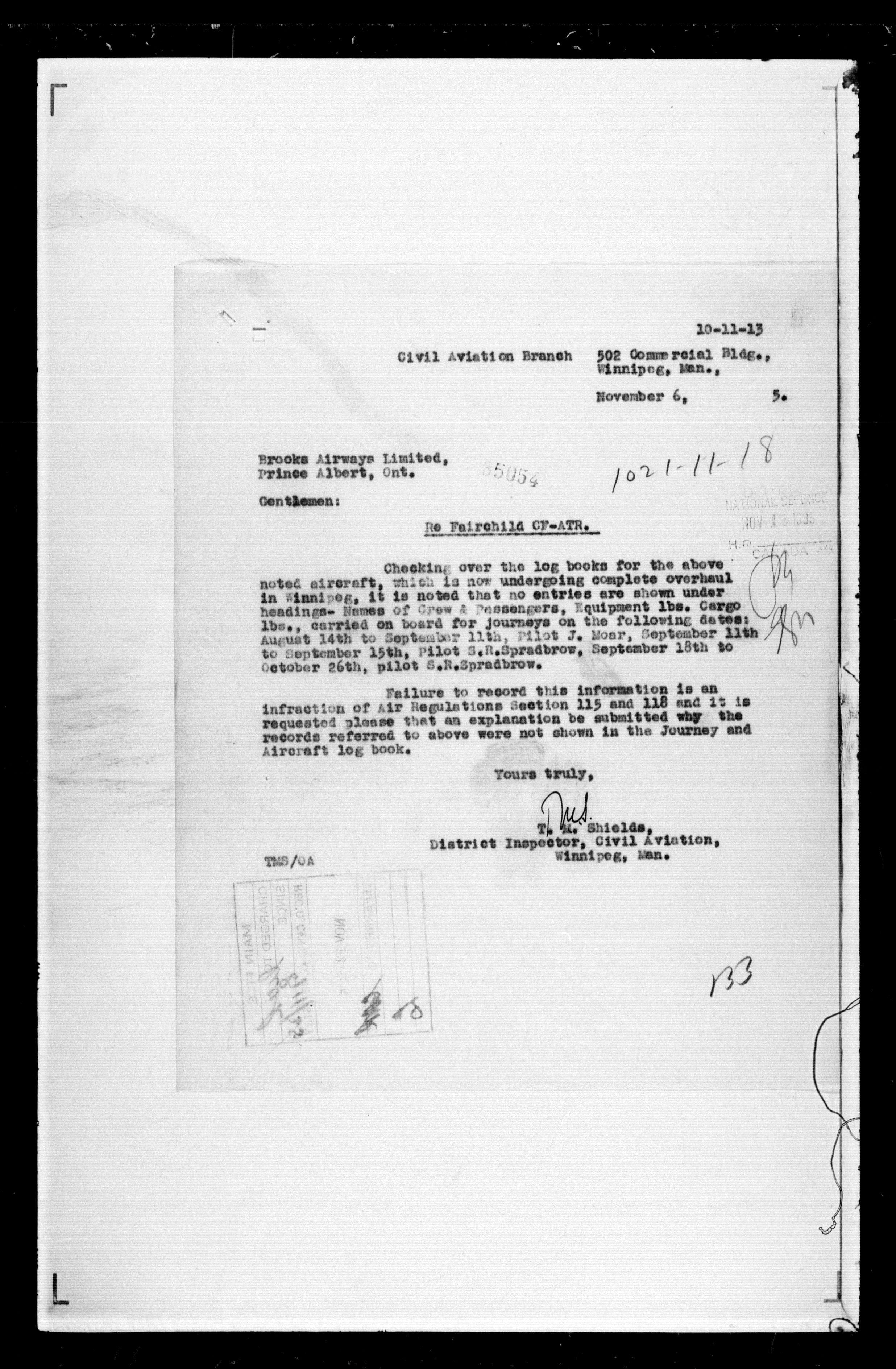 Department of Transport : Civil aircraft registration, inspection and operation files, block 5008, 1920-1986 - 7439