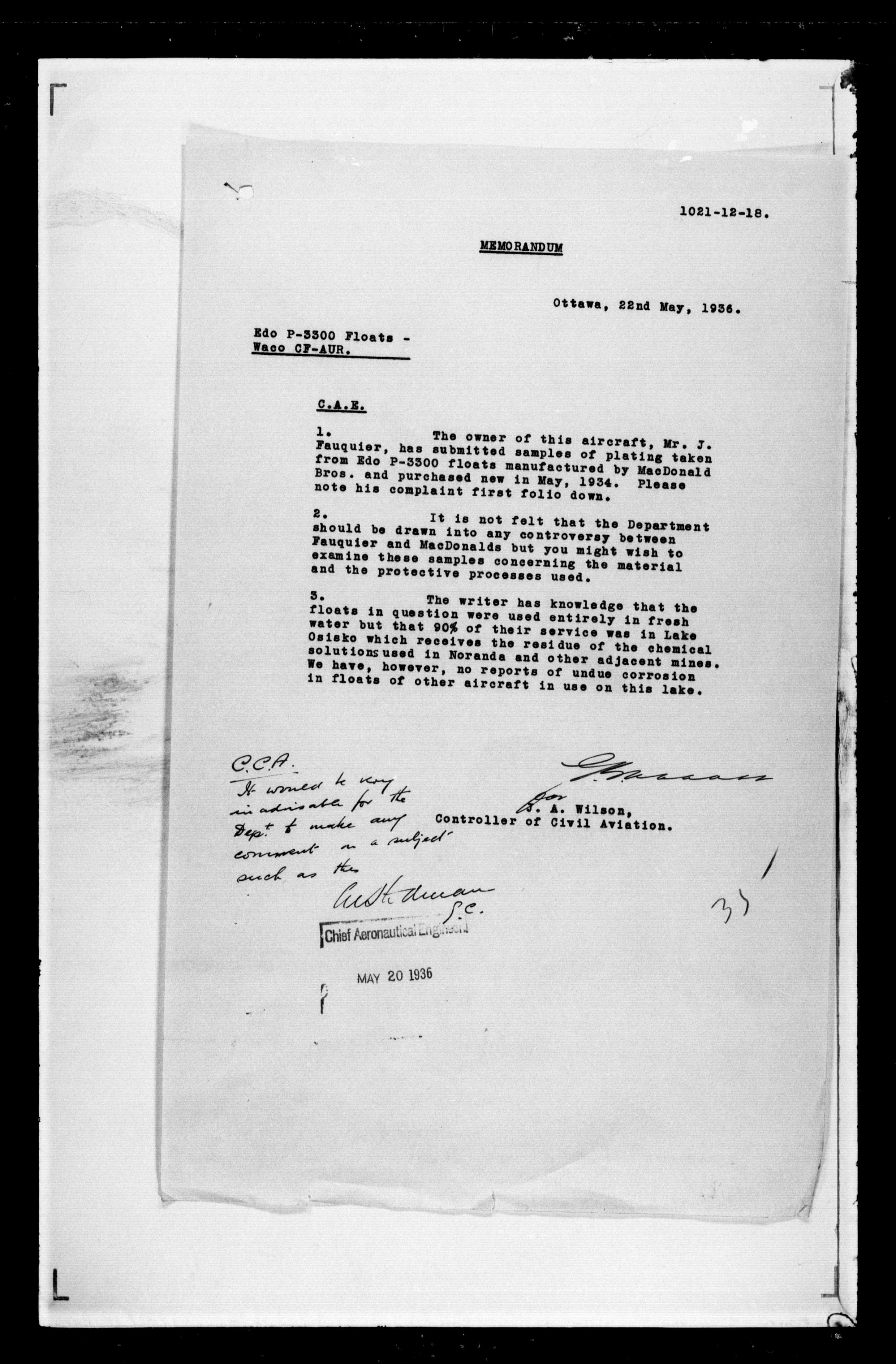 Department of Transport : Civil aircraft registration, inspection and operation files, 1920-1986 : T-7441