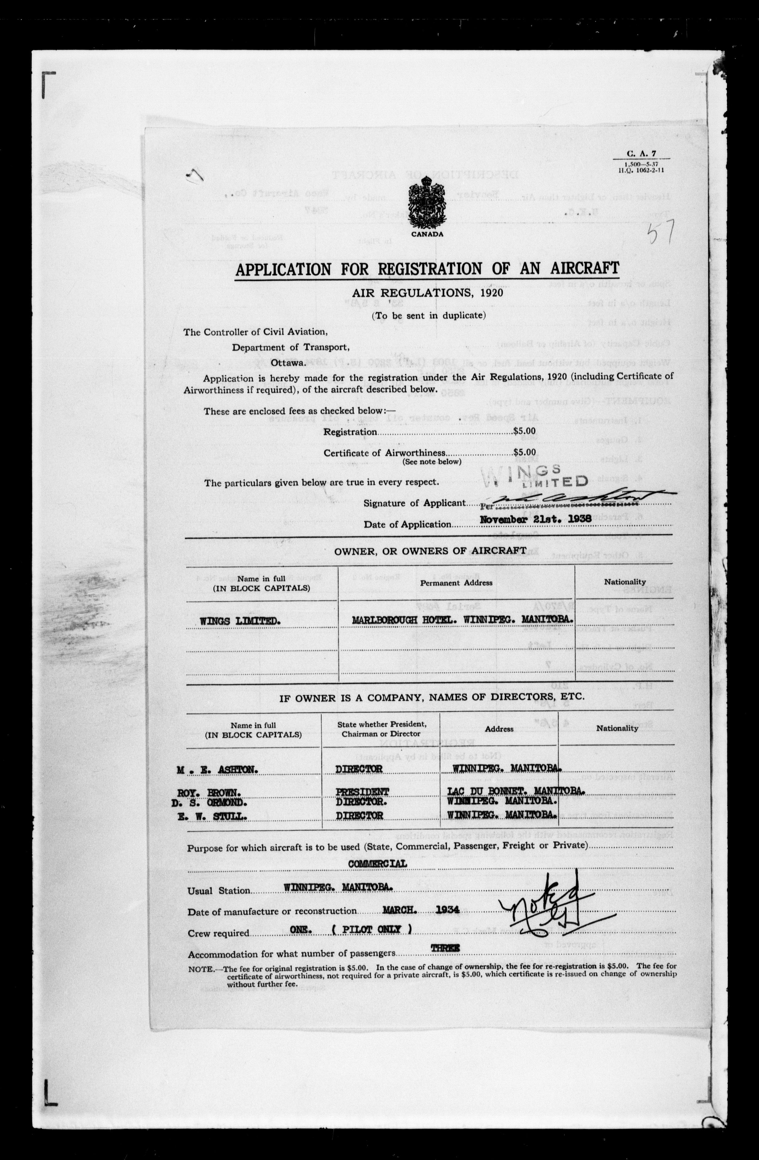 Department of Transport : Civil aircraft registration, inspection and operation files, block 5008, 1920-1986 - 7441