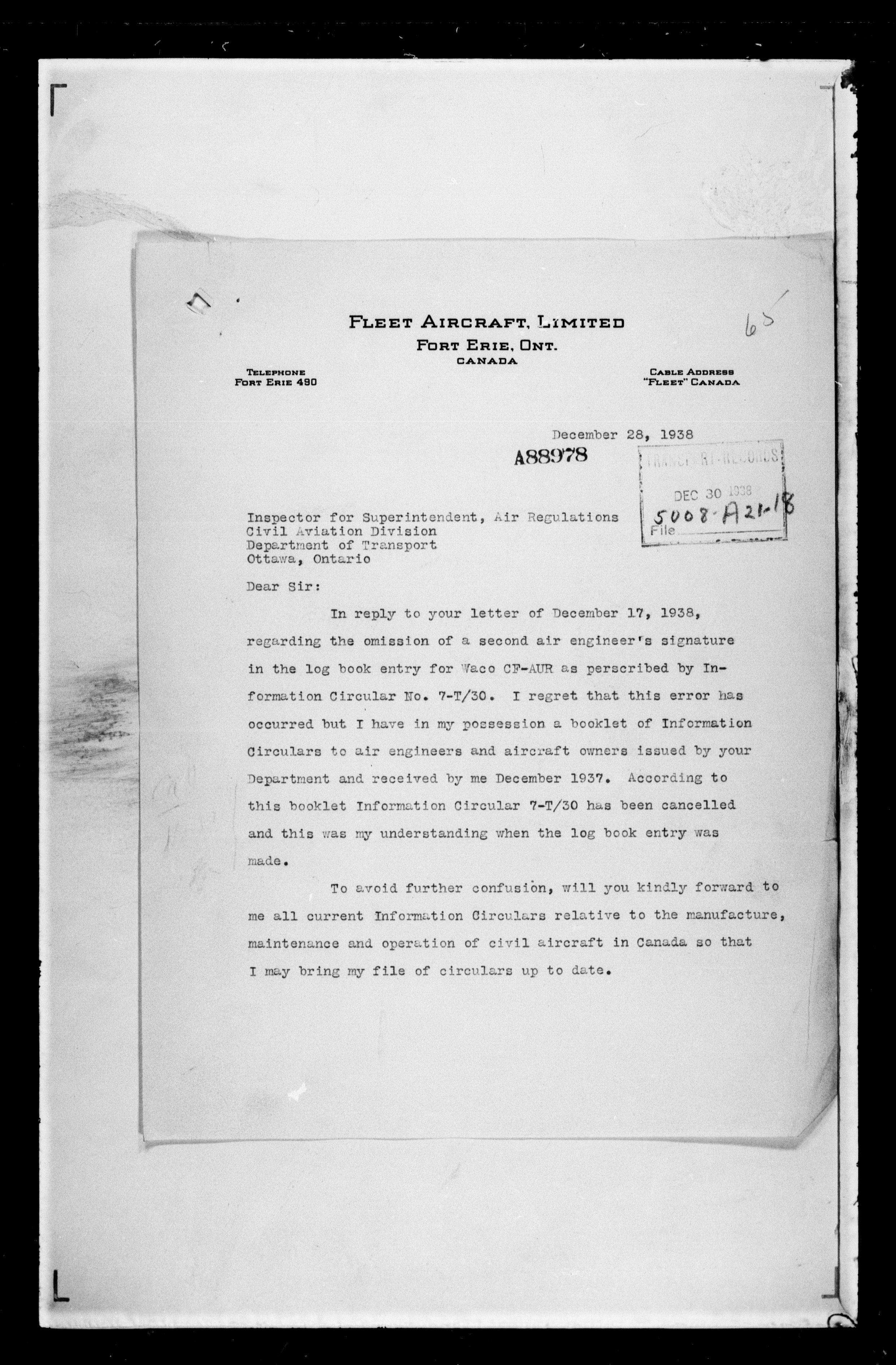 Department of Transport : Civil aircraft registration, inspection and operation files, block 5008, 1920-1986 - 7441