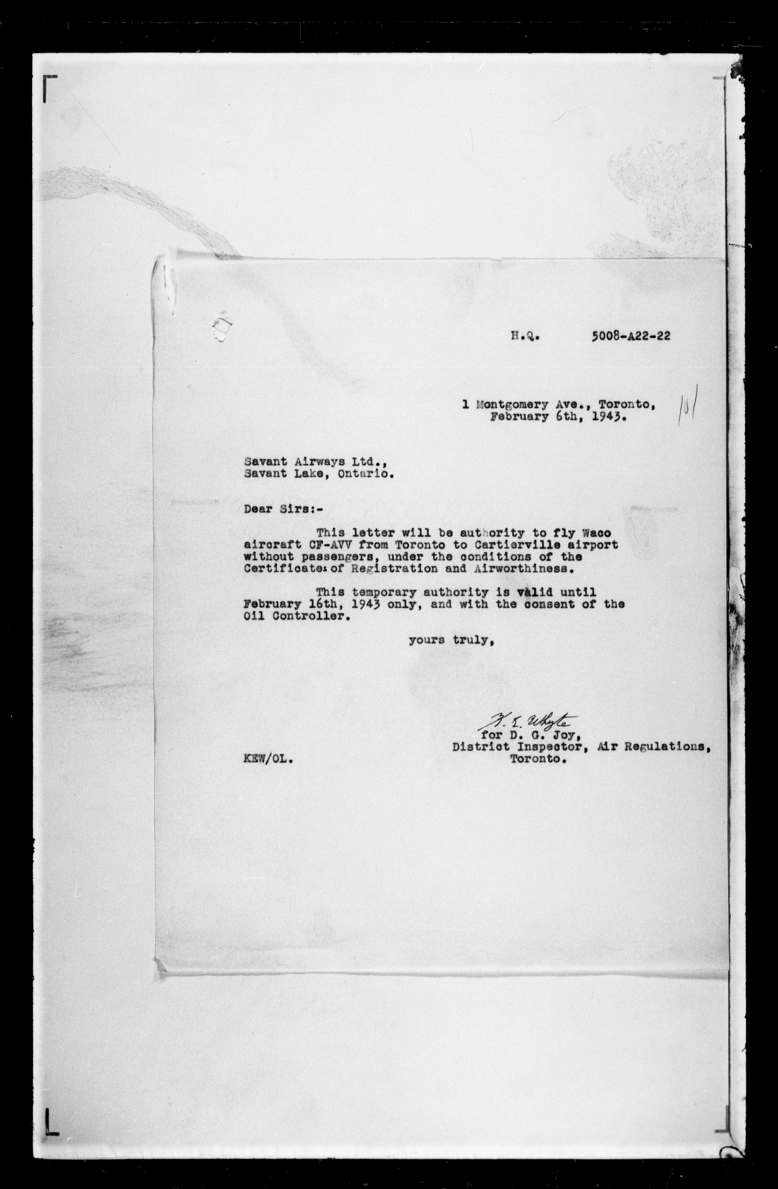 Department of Transport : Civil aircraft registration, inspection and operation files, block 5008, 1920-1986 - 7442