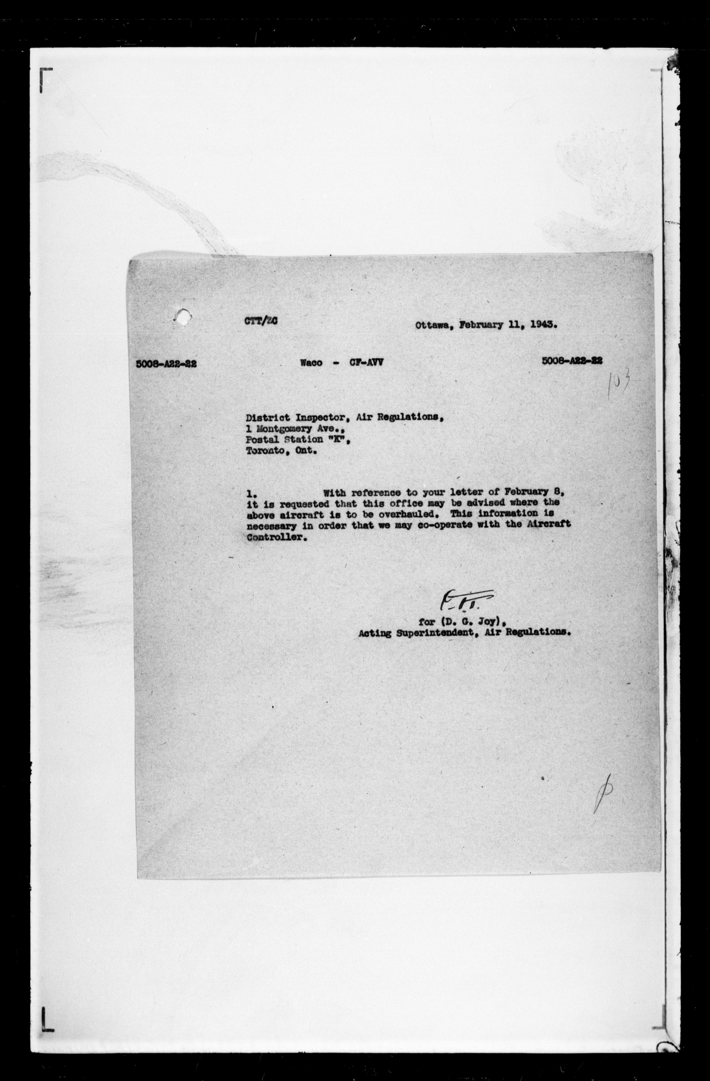 Department of Transport : Civil aircraft registration, inspection and operation files, block 5008, 1920-1986 - 7442