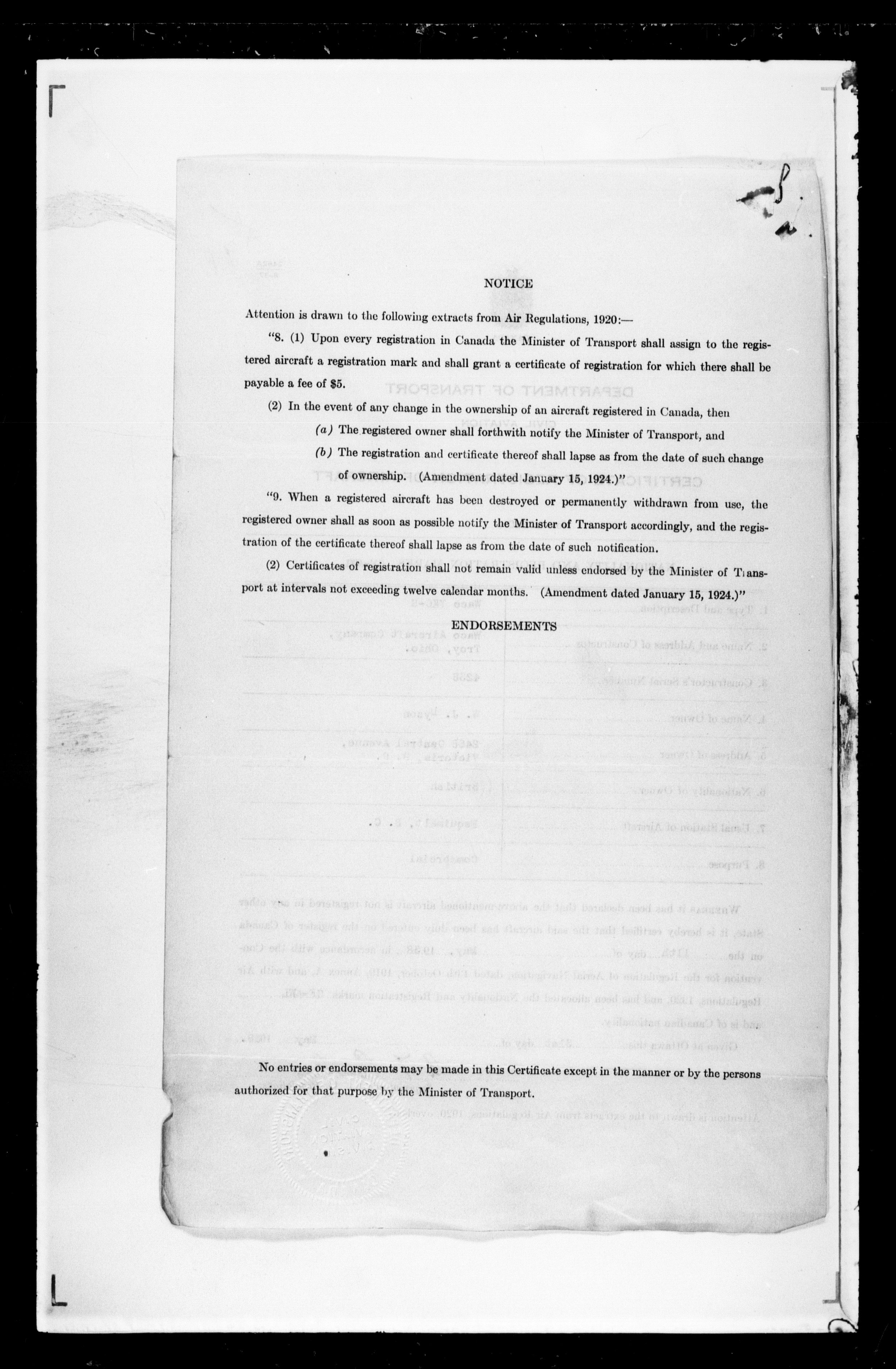 Department of Transport : Civil aircraft registration, inspection and operation files, block 5008, 1920-1986 - 7443
