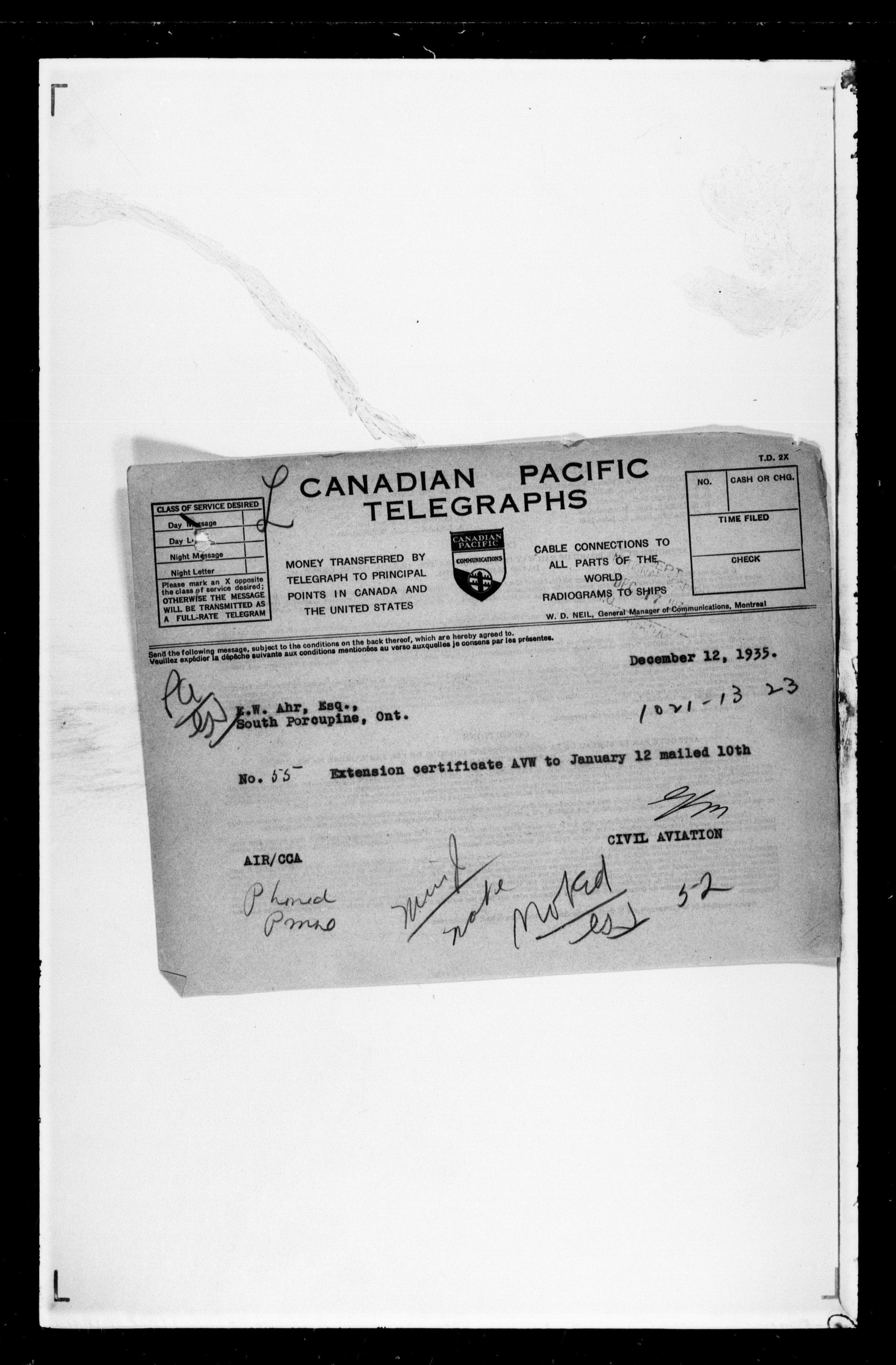 Department of Transport : Civil aircraft registration, inspection and operation files, 1920-1986 : T-7443