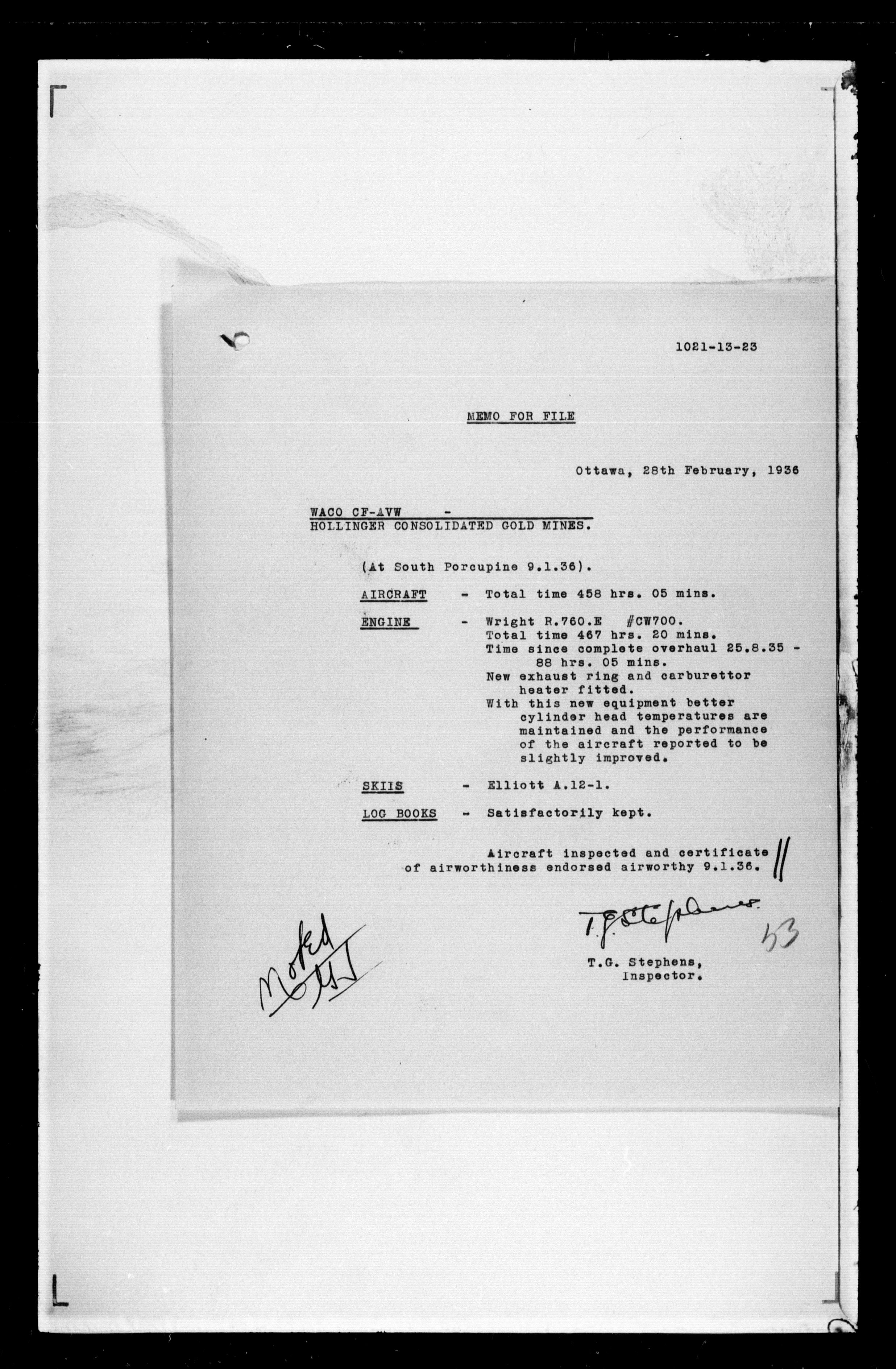 Department of Transport : Civil aircraft registration, inspection and operation files, block 5008, 1920-1986 - 7443