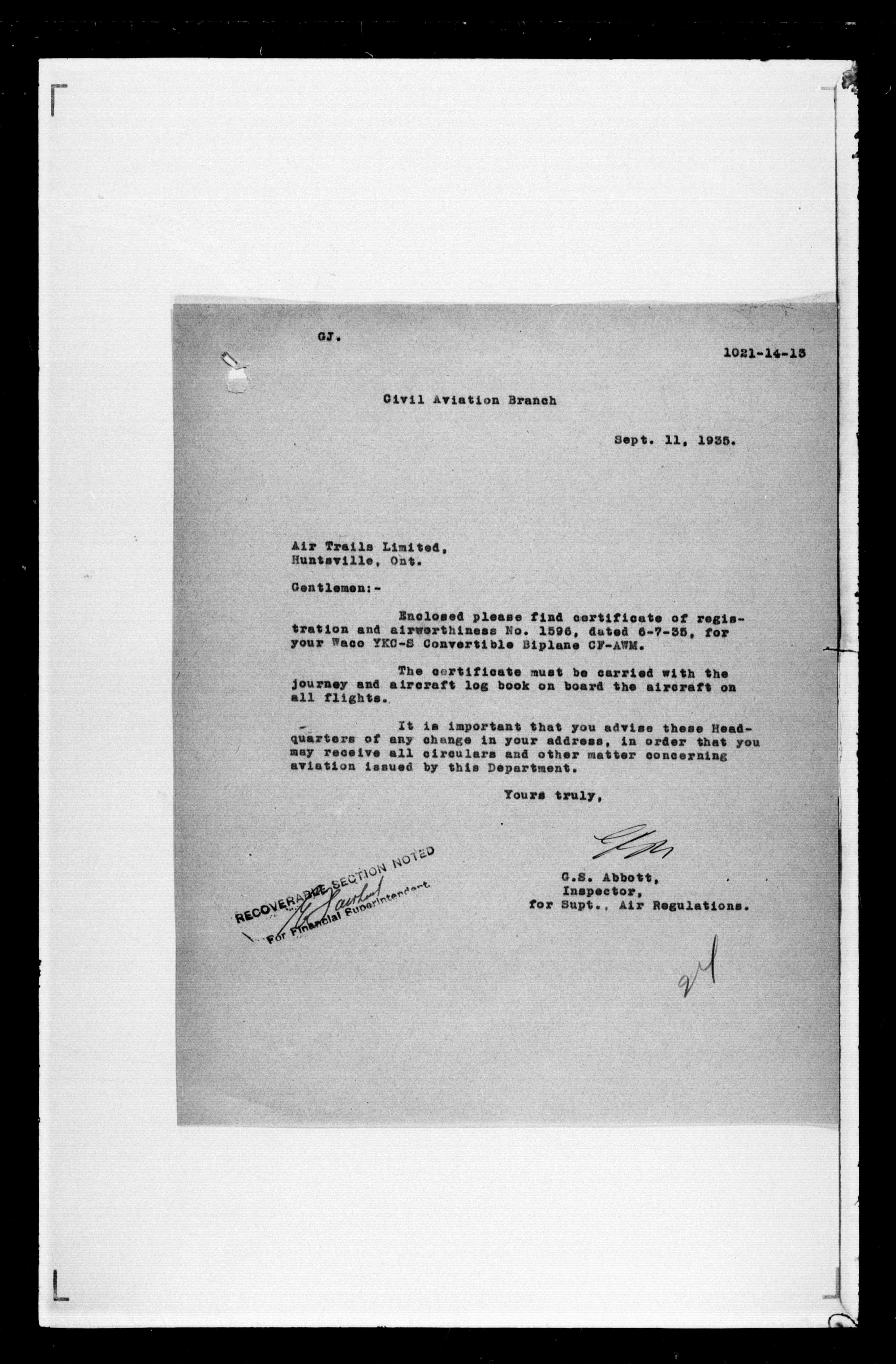 Department of Transport : Civil aircraft registration, inspection and operation files, block 5008, 1920-1986 - 7444