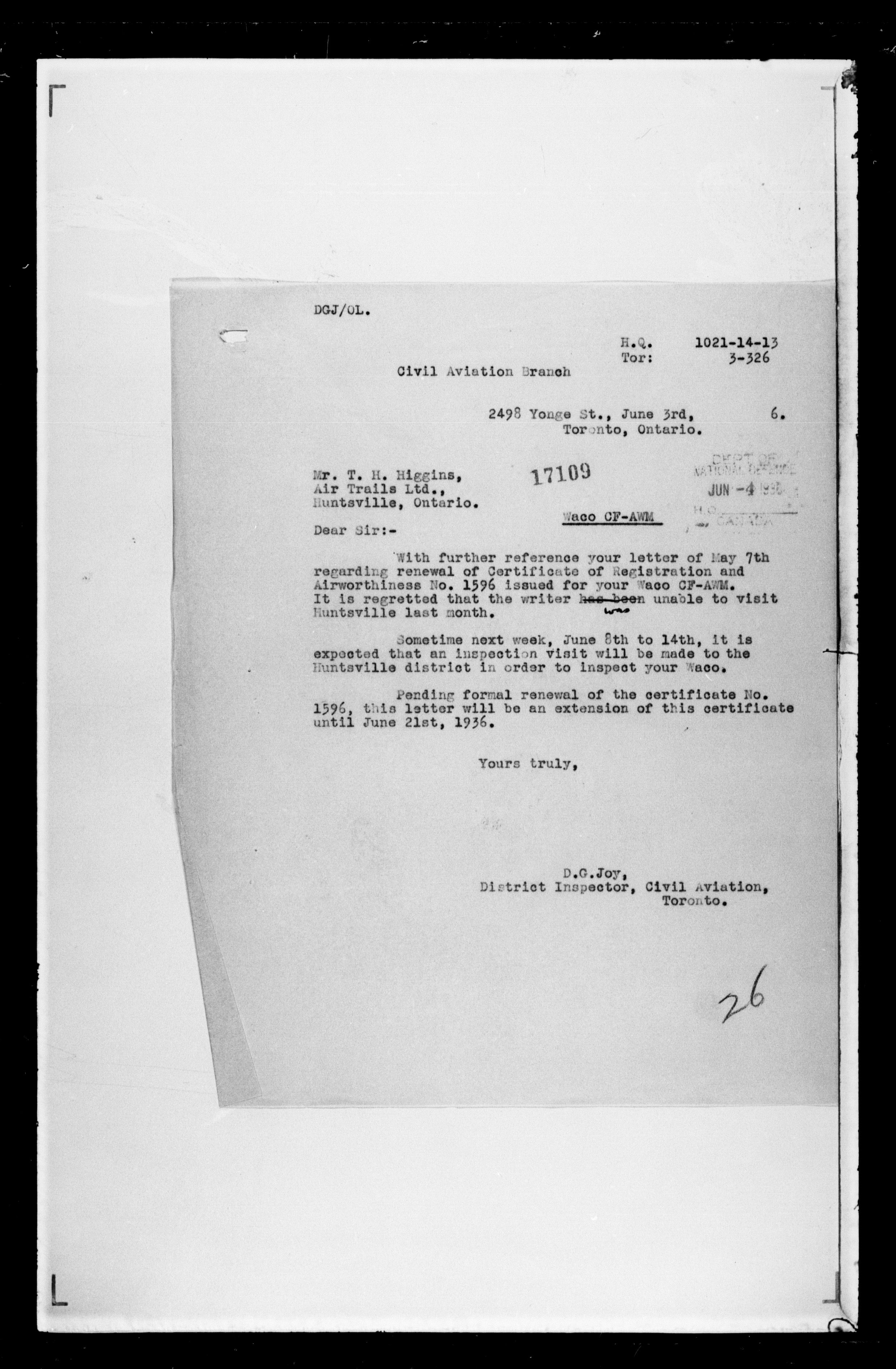 Department of Transport : Civil aircraft registration, inspection and operation files, block 5008, 1920-1986 - 7444
