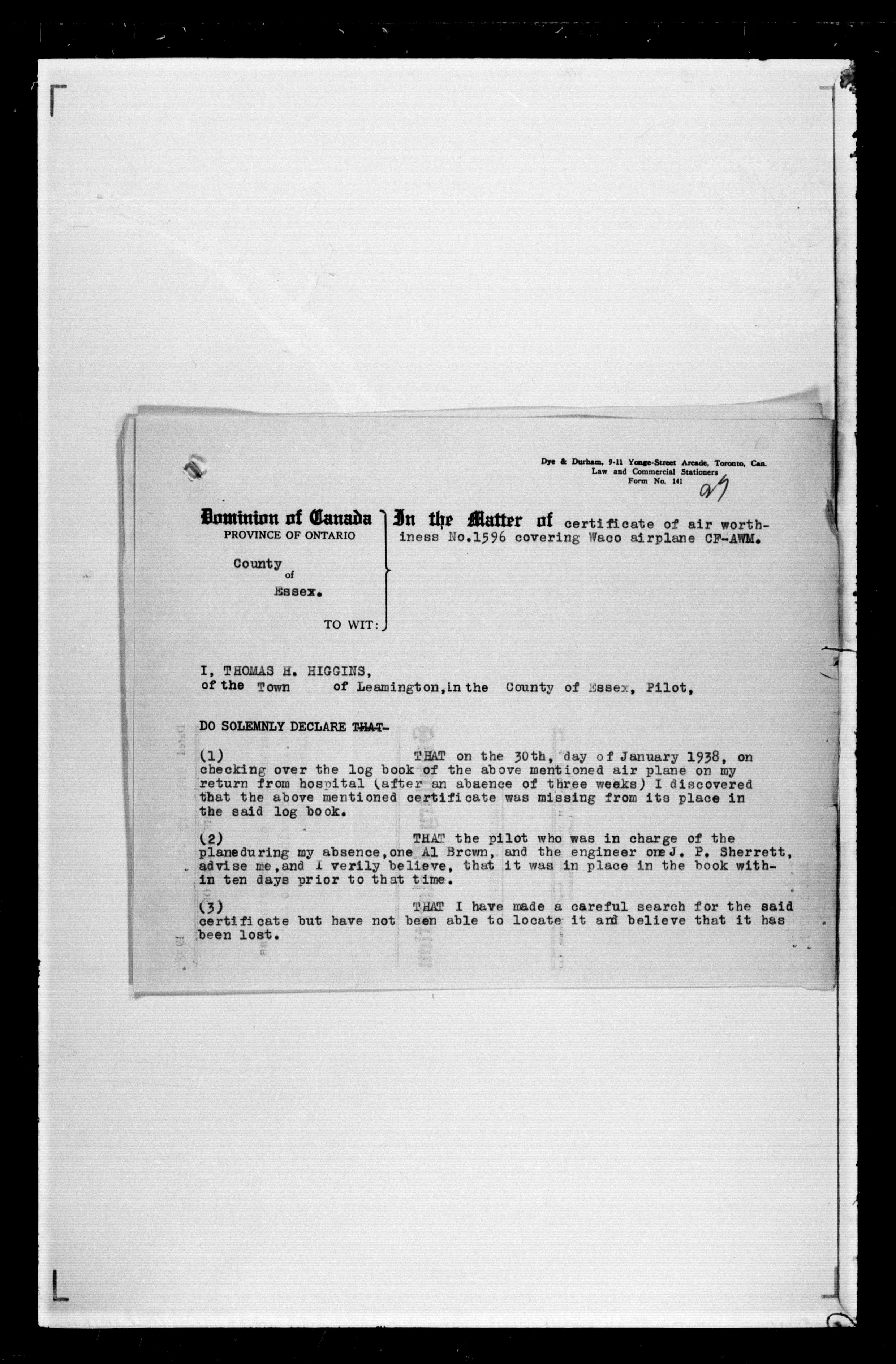 Department of Transport : Civil aircraft registration, inspection and operation files, block 5008, 1920-1986 - 7444