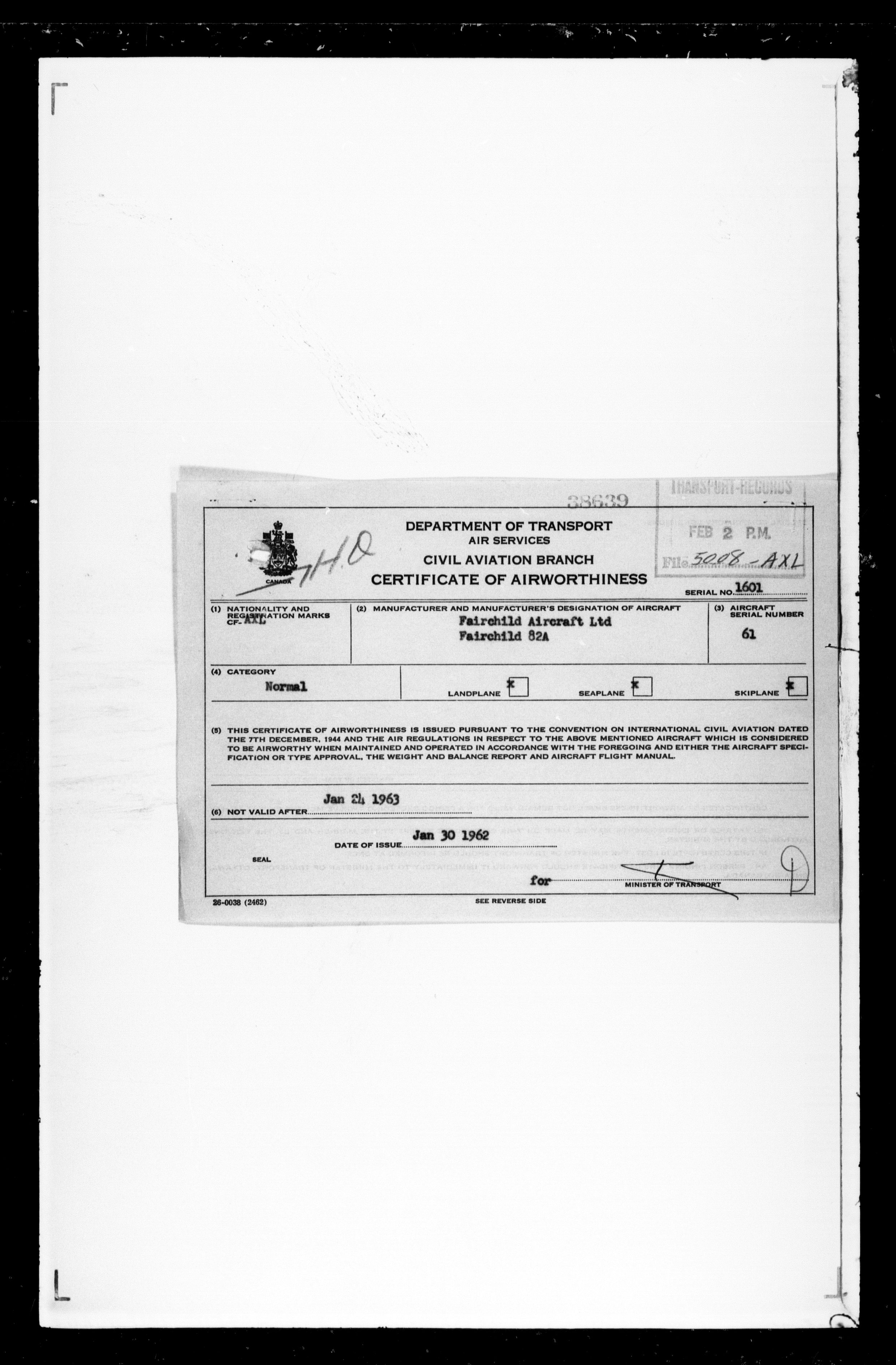 Department of Transport : Civil aircraft registration, inspection and operation files, block 5008, 1920-1986 - 7445