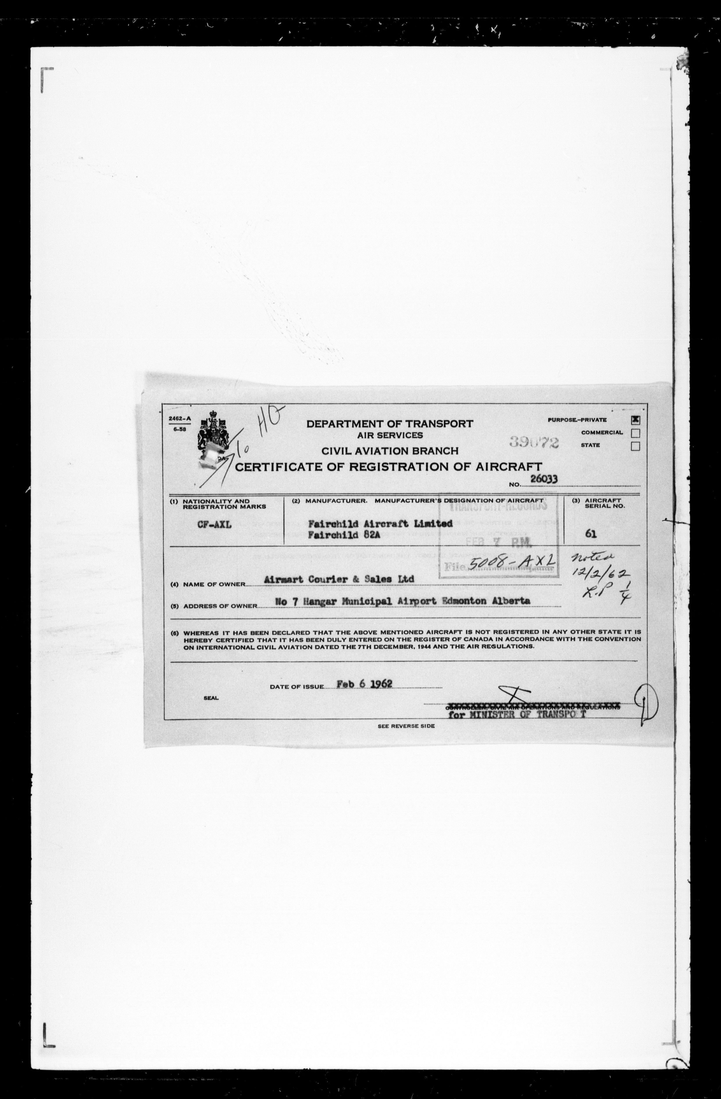 Department of Transport : Civil aircraft registration, inspection and operation files, block 5008, 1920-1986 - 7445