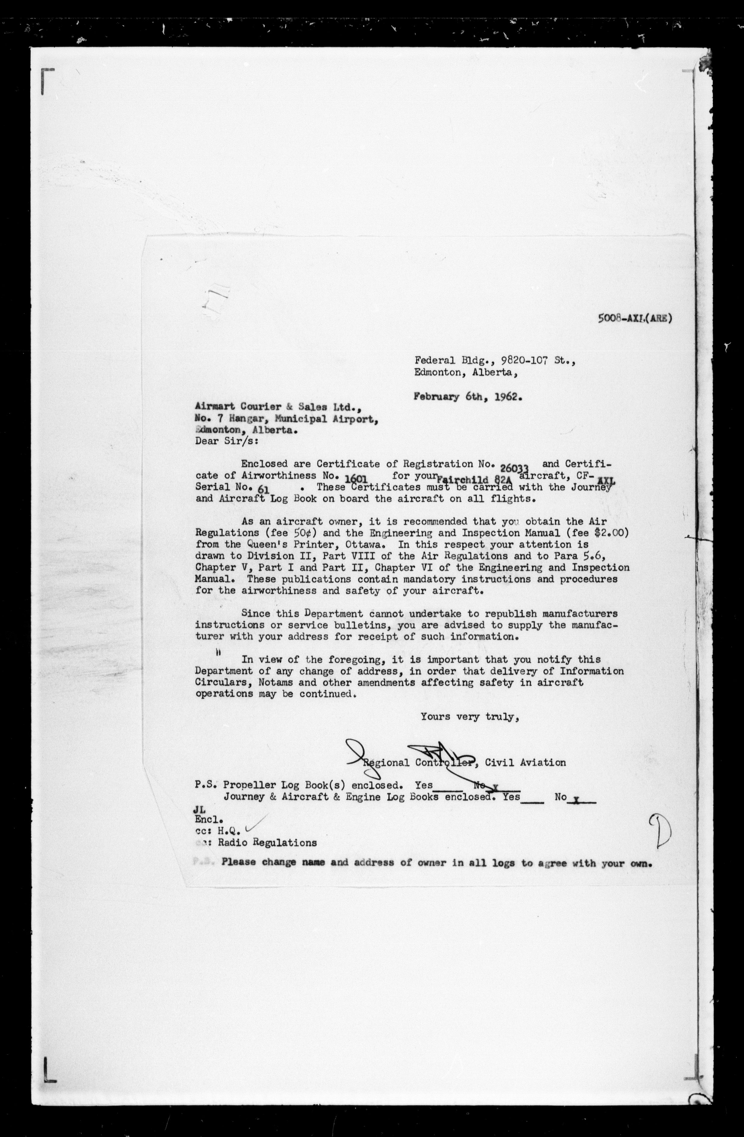 Department of Transport : Civil aircraft registration, inspection and operation files, block 5008, 1920-1986 - 7445
