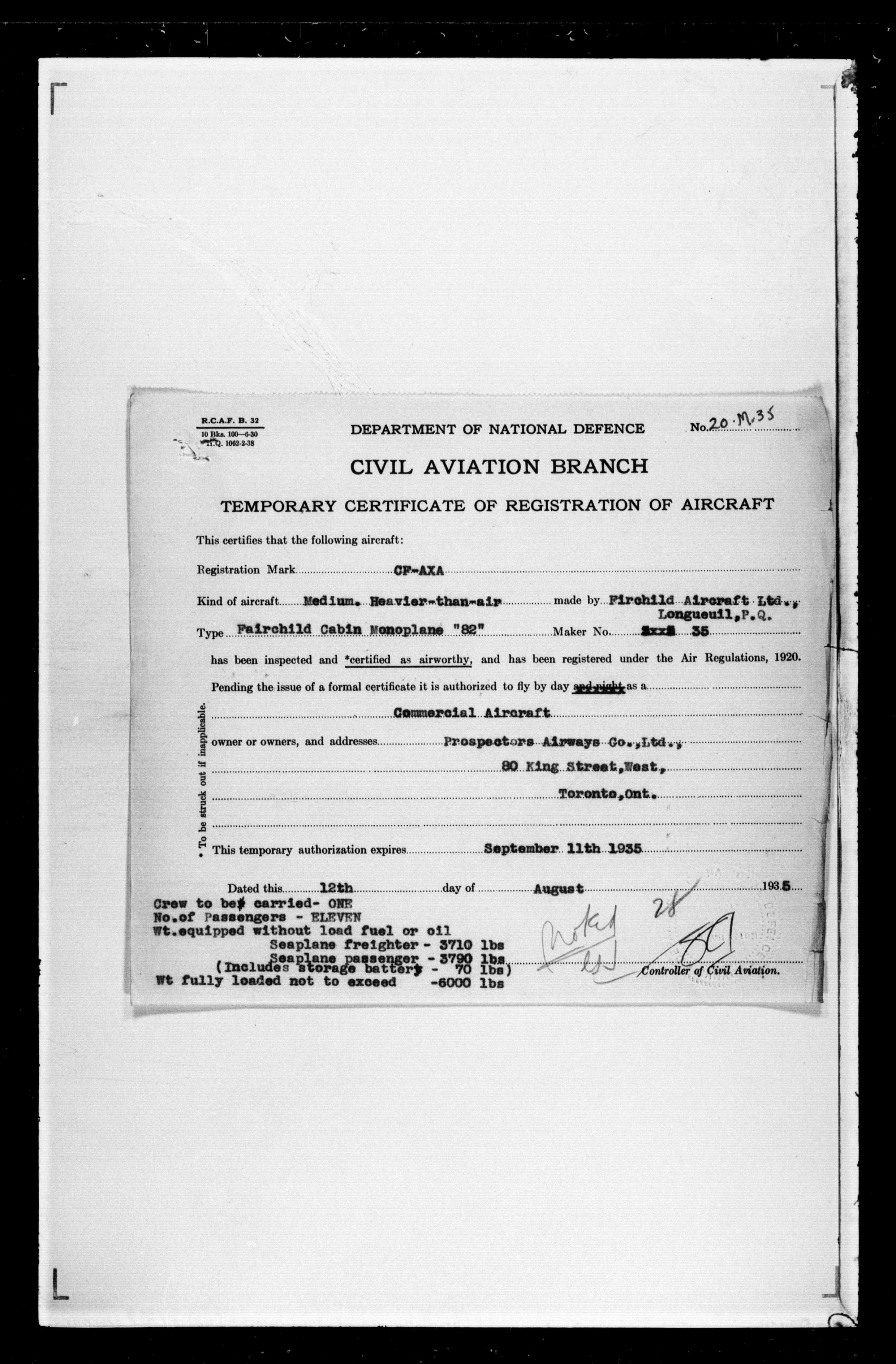 Department of Transport : Civil aircraft registration, inspection and operation files, block 5008, 1920-1986 - 7445