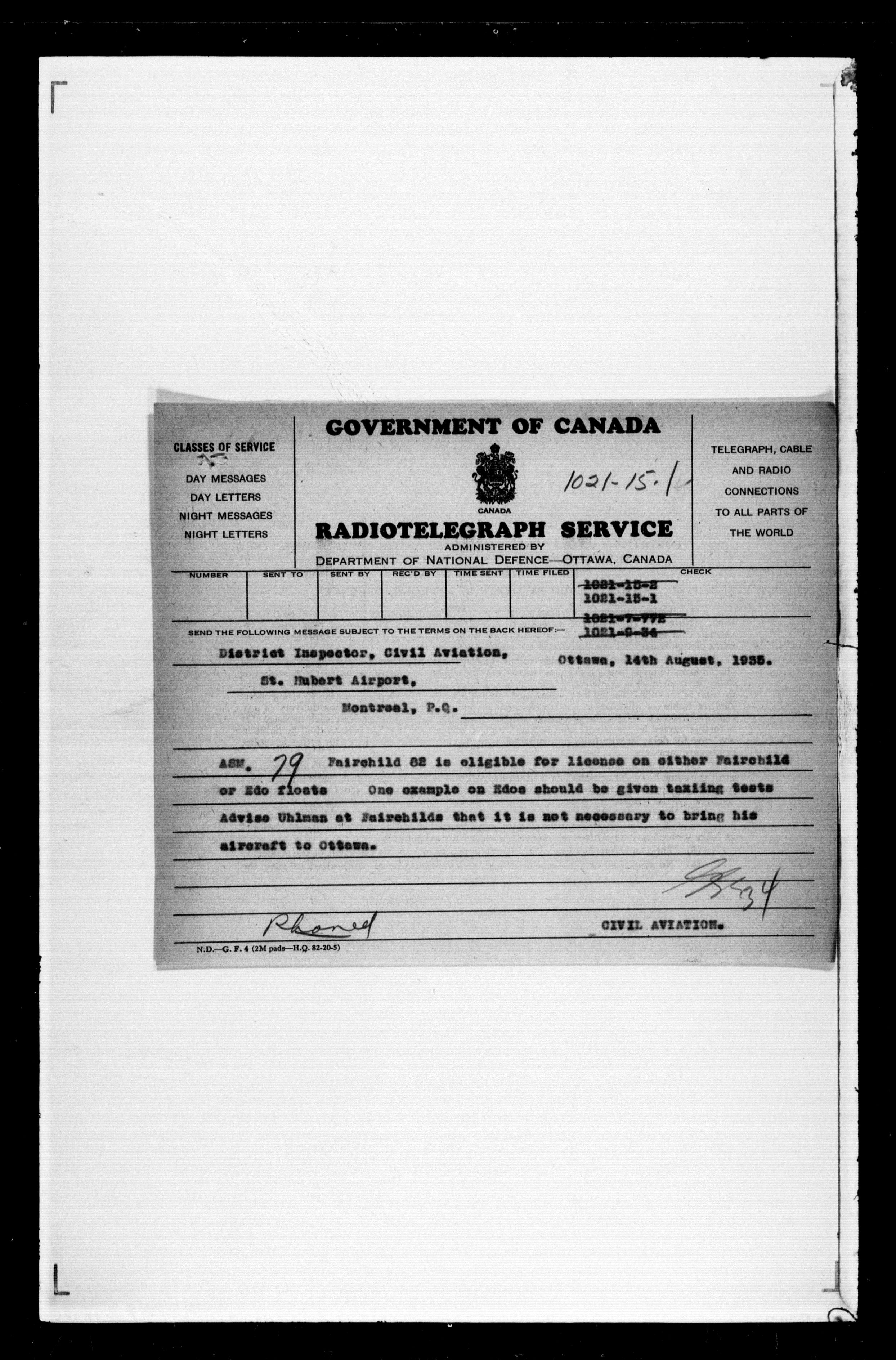 Department of Transport : Civil aircraft registration, inspection and operation files, block 5008, 1920-1986 - 7445