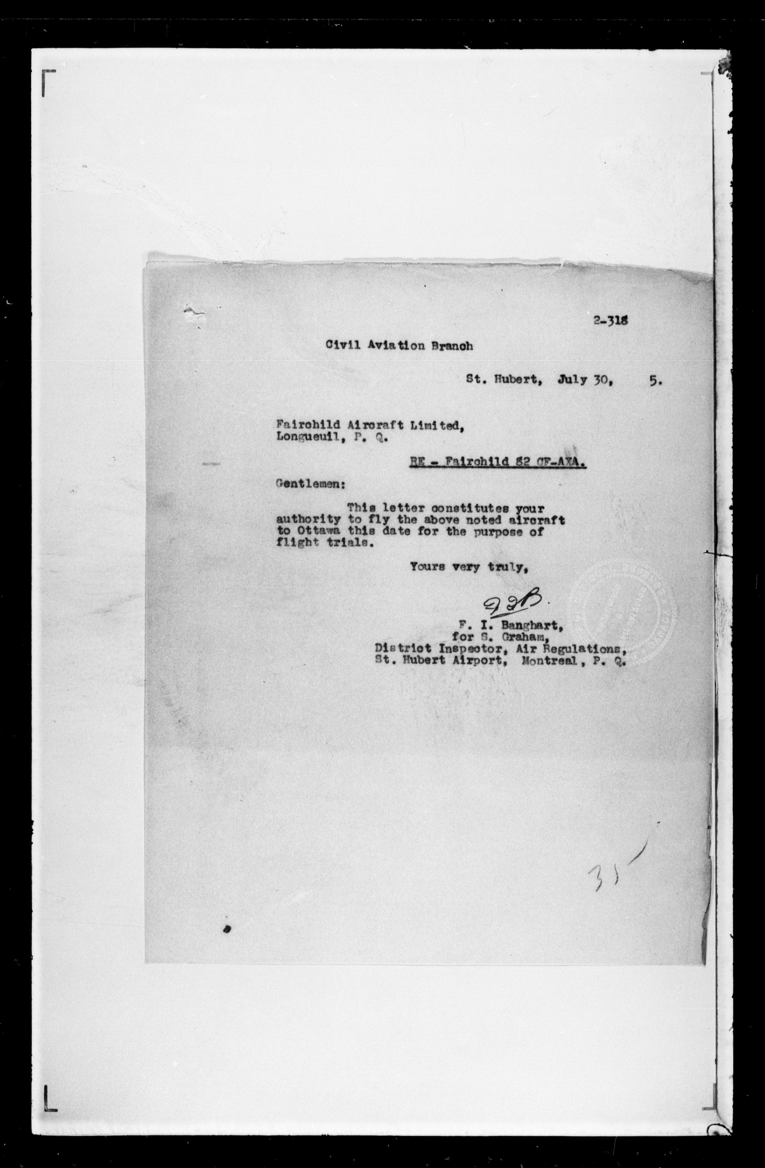 Department of Transport : Civil aircraft registration, inspection and operation files, block 5008, 1920-1986 - 7445