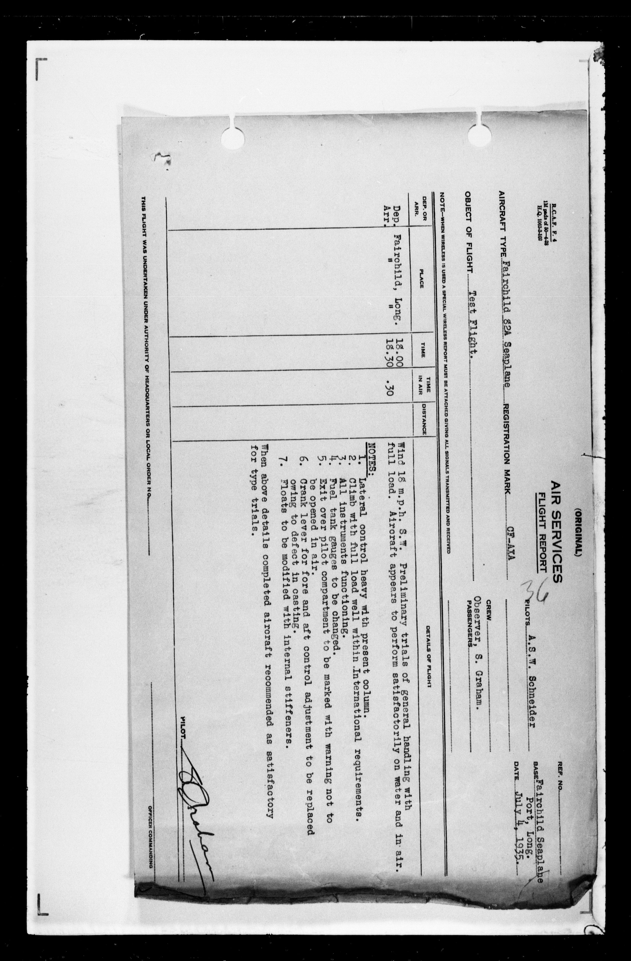 Department of Transport : Civil aircraft registration, inspection and operation files, block 5008, 1920-1986 - 7445