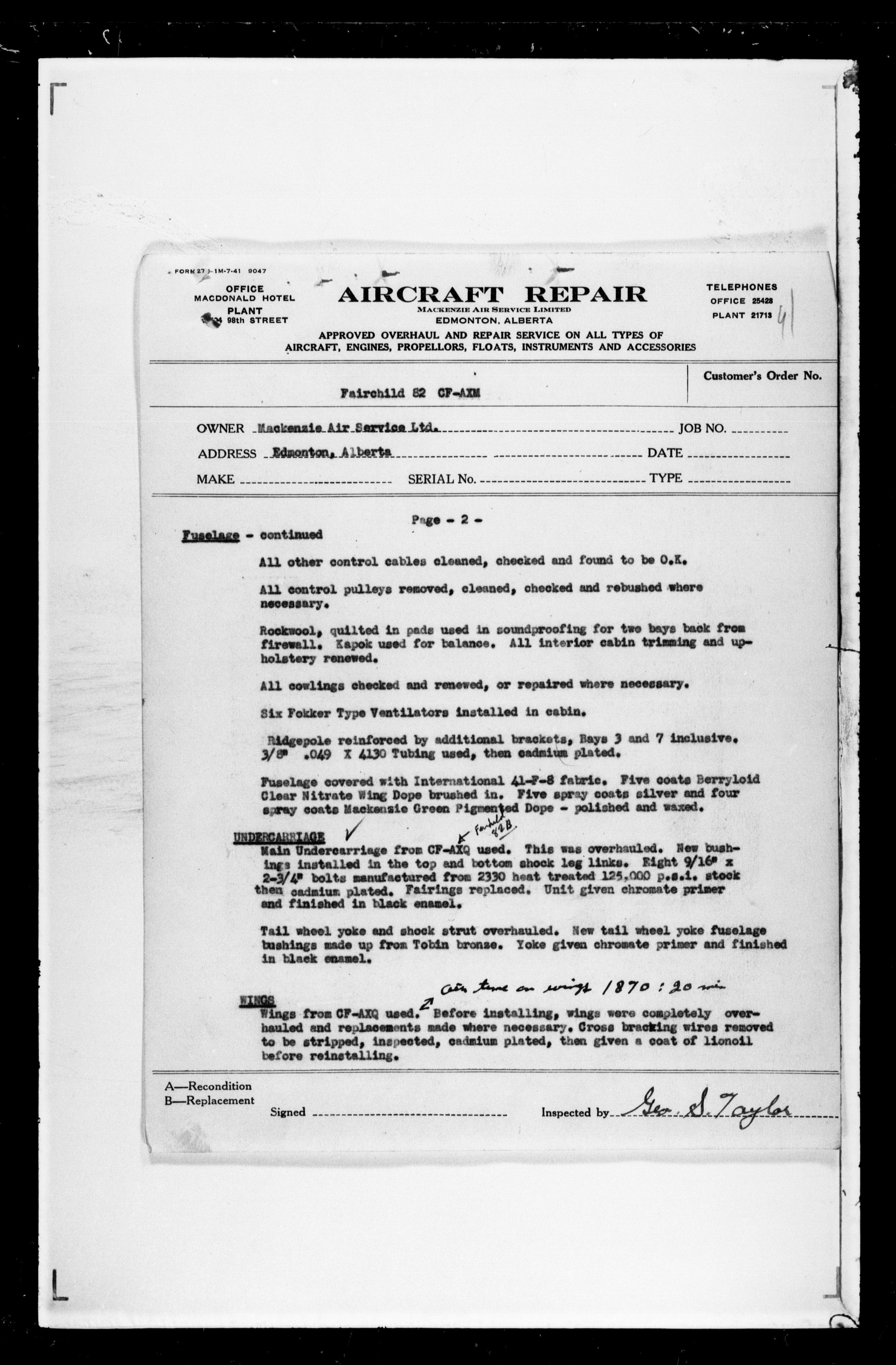 Department of Transport : Civil aircraft registration, inspection and operation files, block 5008, 1920-1986 - 7446