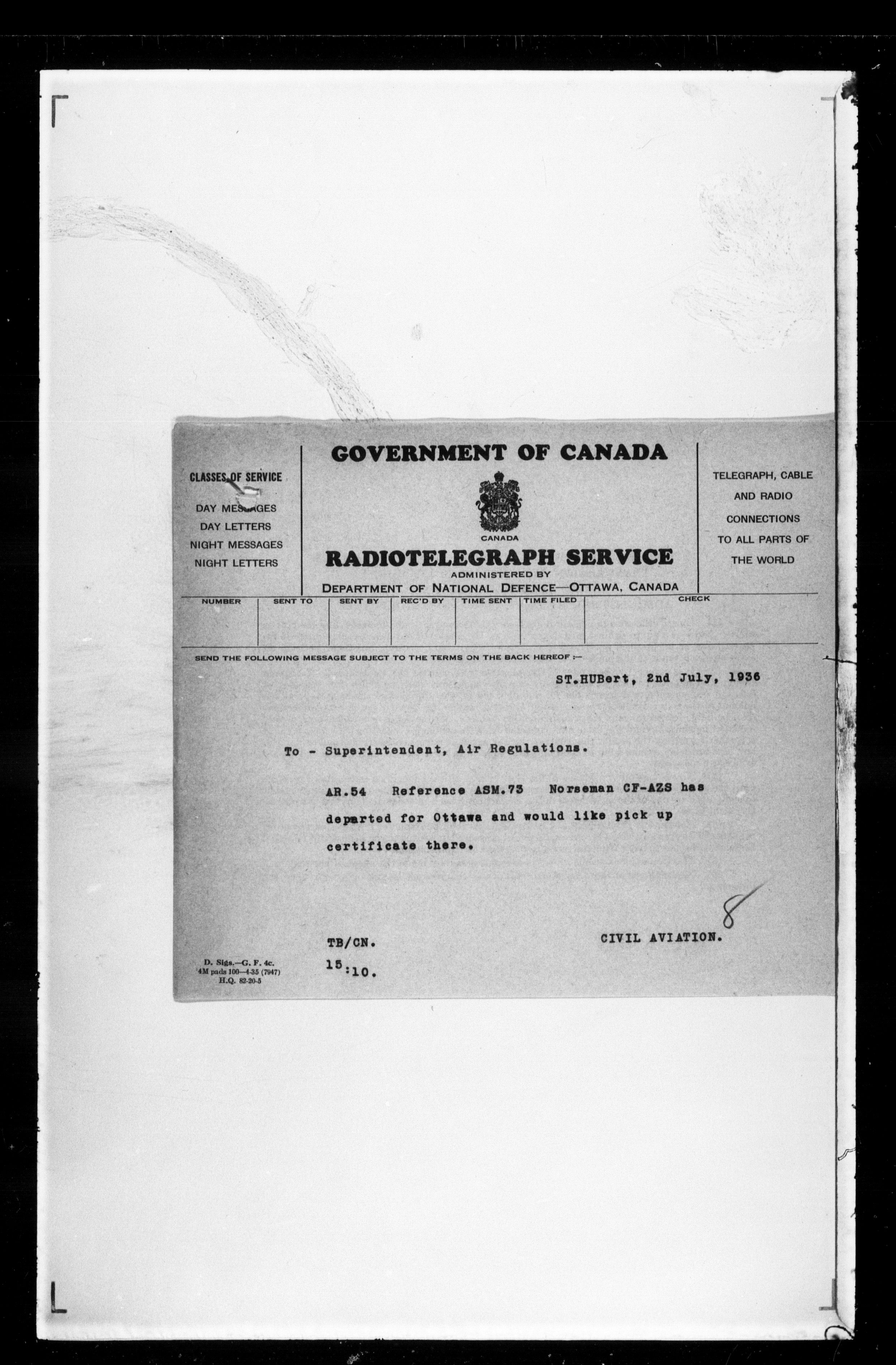 Department of Transport : Civil aircraft registration, inspection and operation files, block 5008, 1920-1986 - 7449