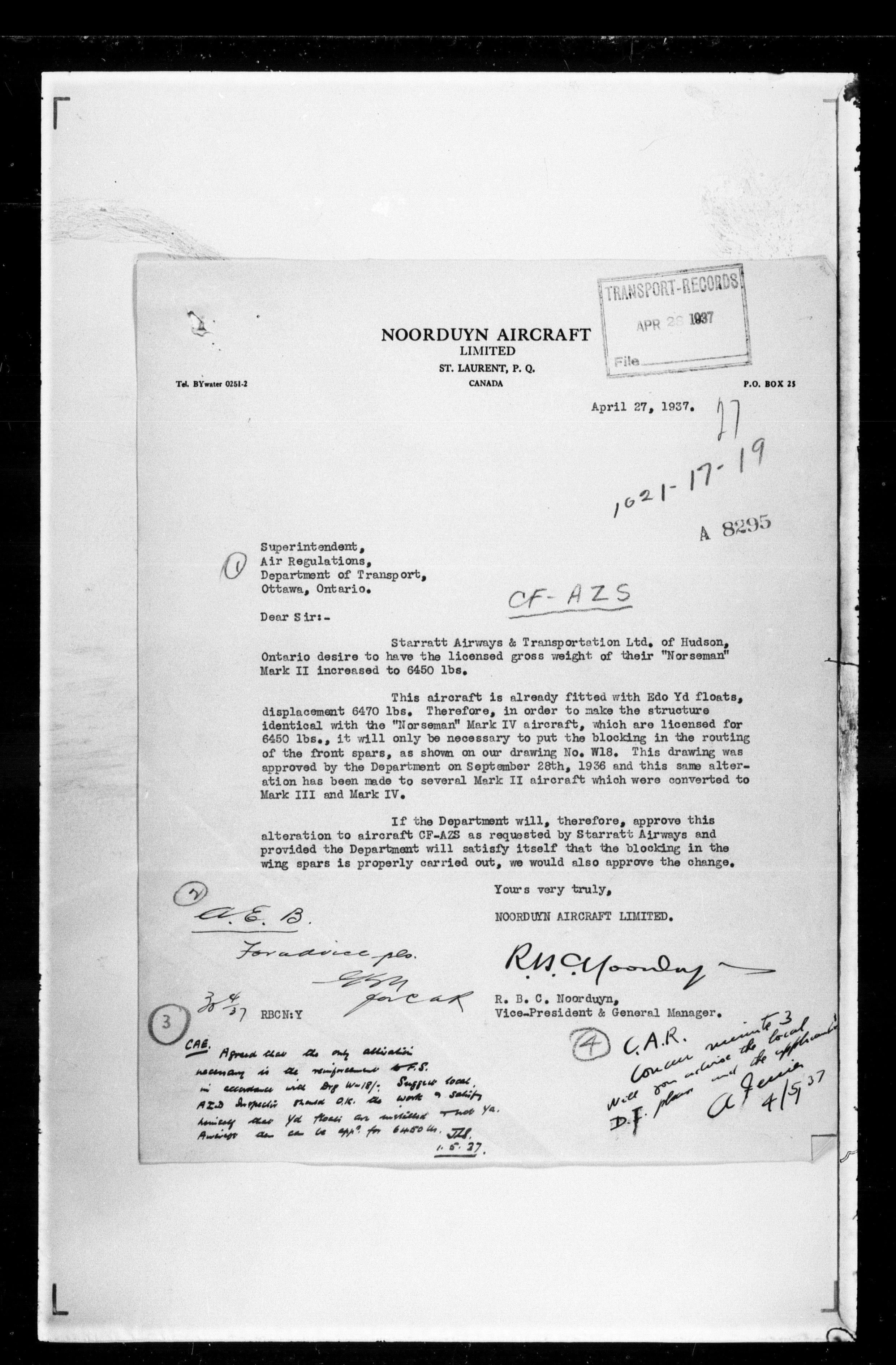 Department of Transport : Civil aircraft registration, inspection and operation files, block 5008, 1920-1986 - 7449