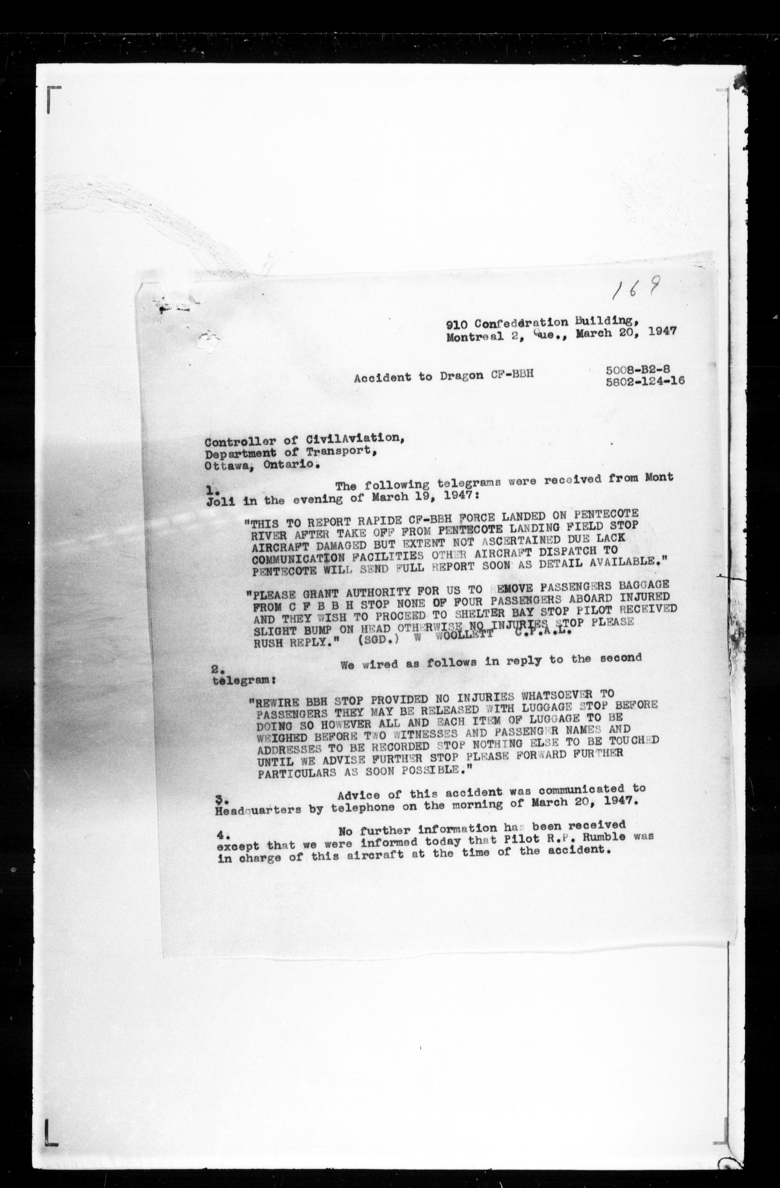 Department of Transport : Civil aircraft registration, inspection and operation files, block 5008, 1920-1986 - 7450
