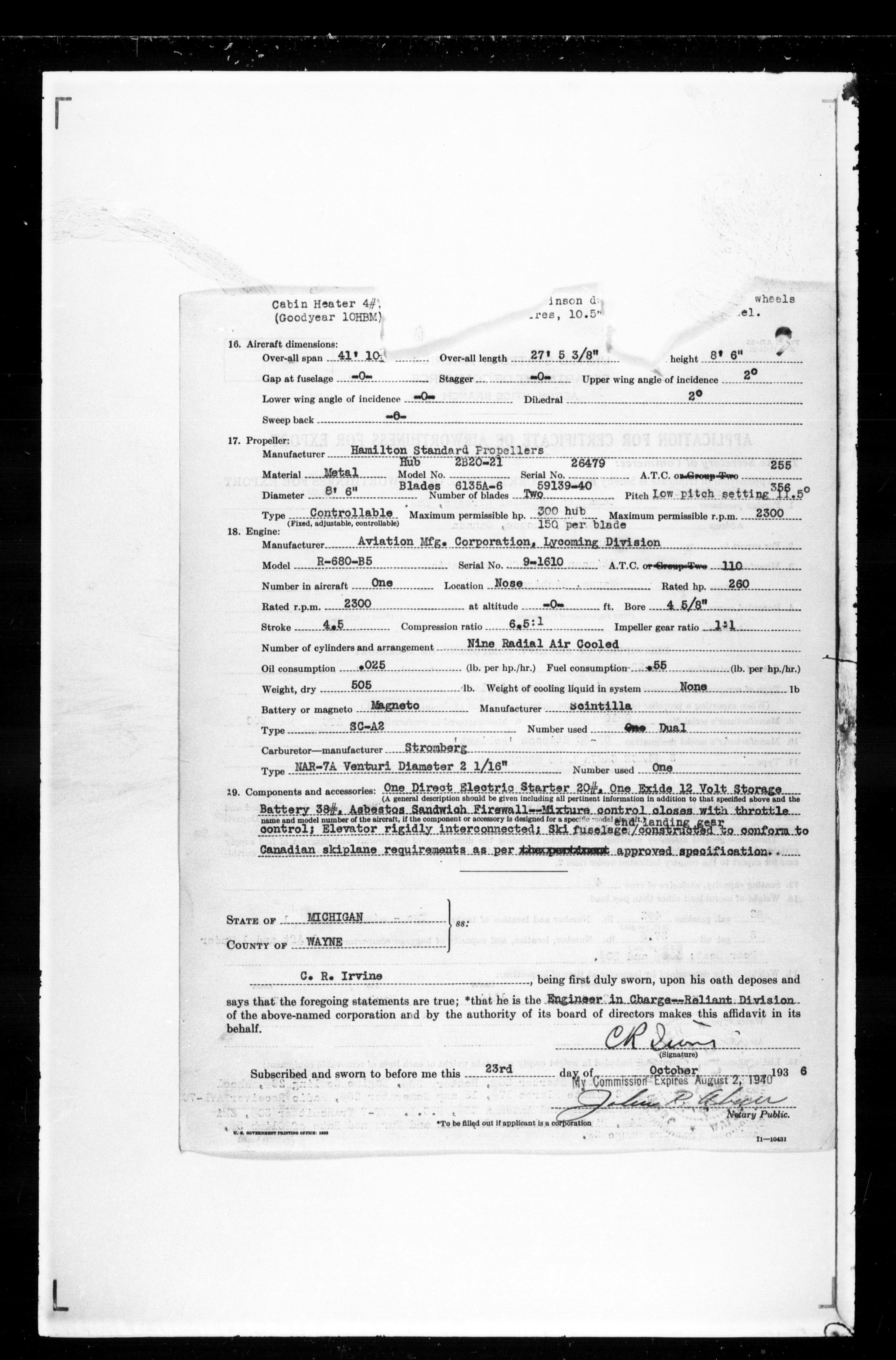 Department of Transport : Civil aircraft registration, inspection and operation files, block 5008, 1920-1986 - 7450