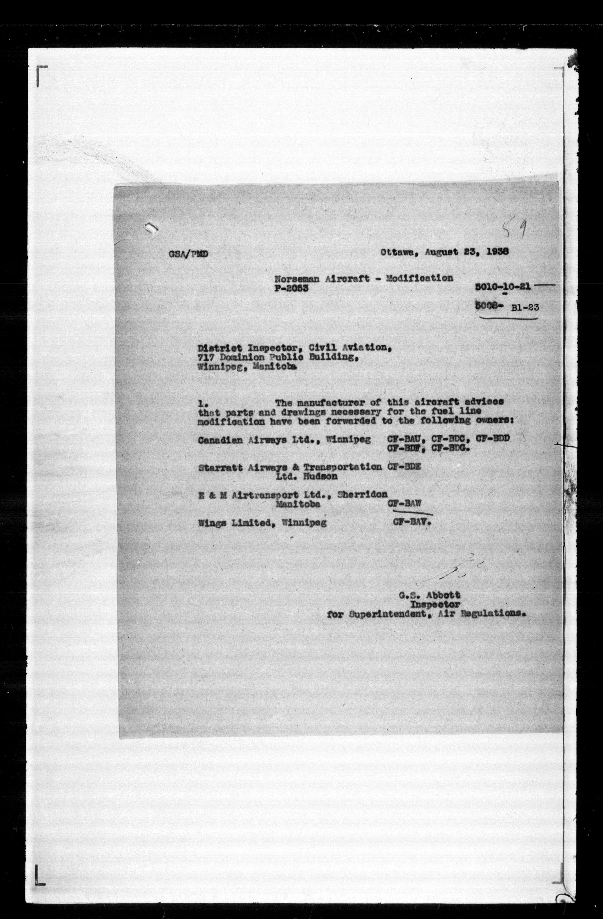 Department of Transport : Civil aircraft registration, inspection and operation files, block 5008, 1920-1986 - 7450