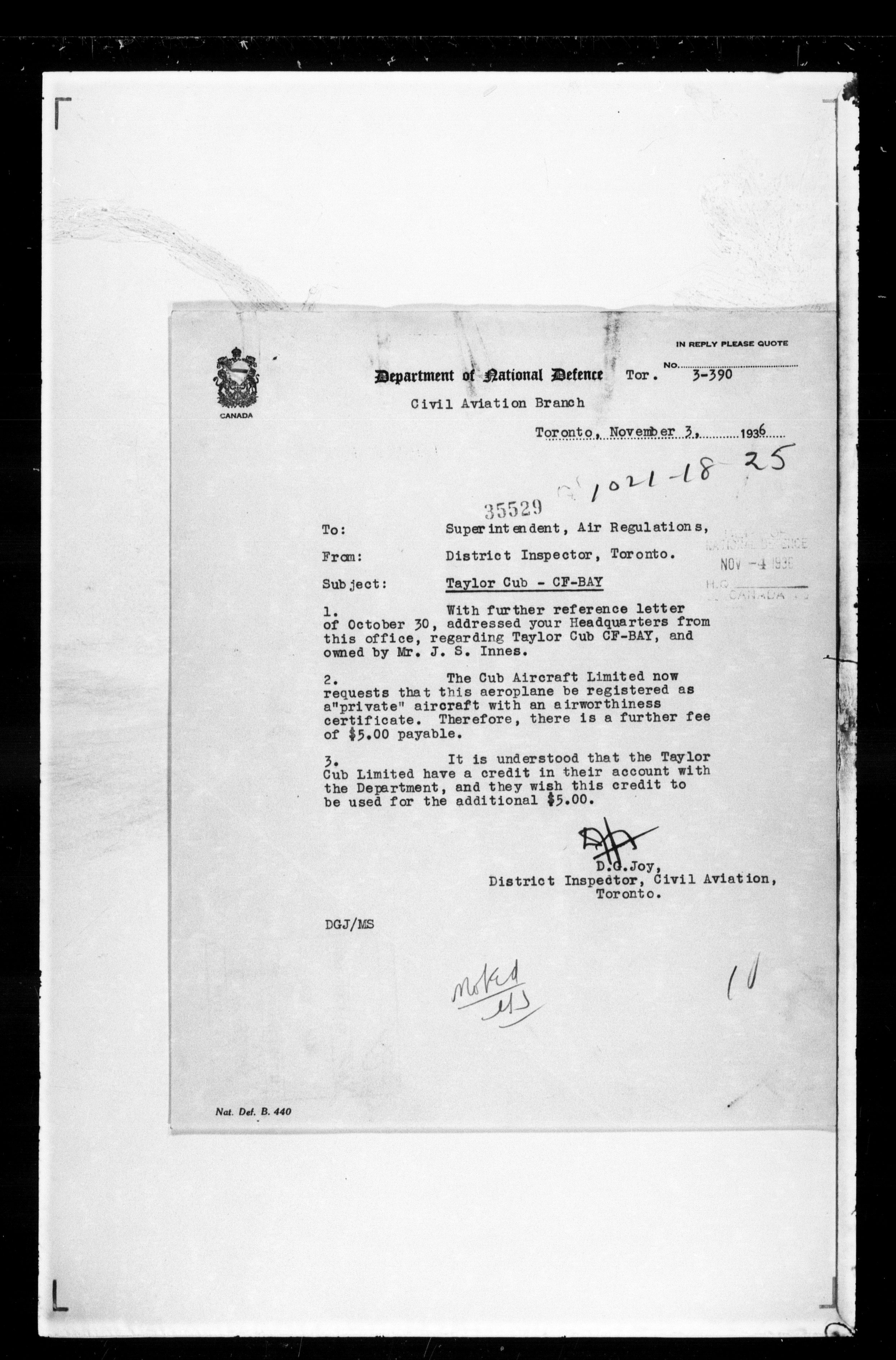 Department of Transport : Civil aircraft registration, inspection and operation files, block 5008, 1920-1986 - 7450