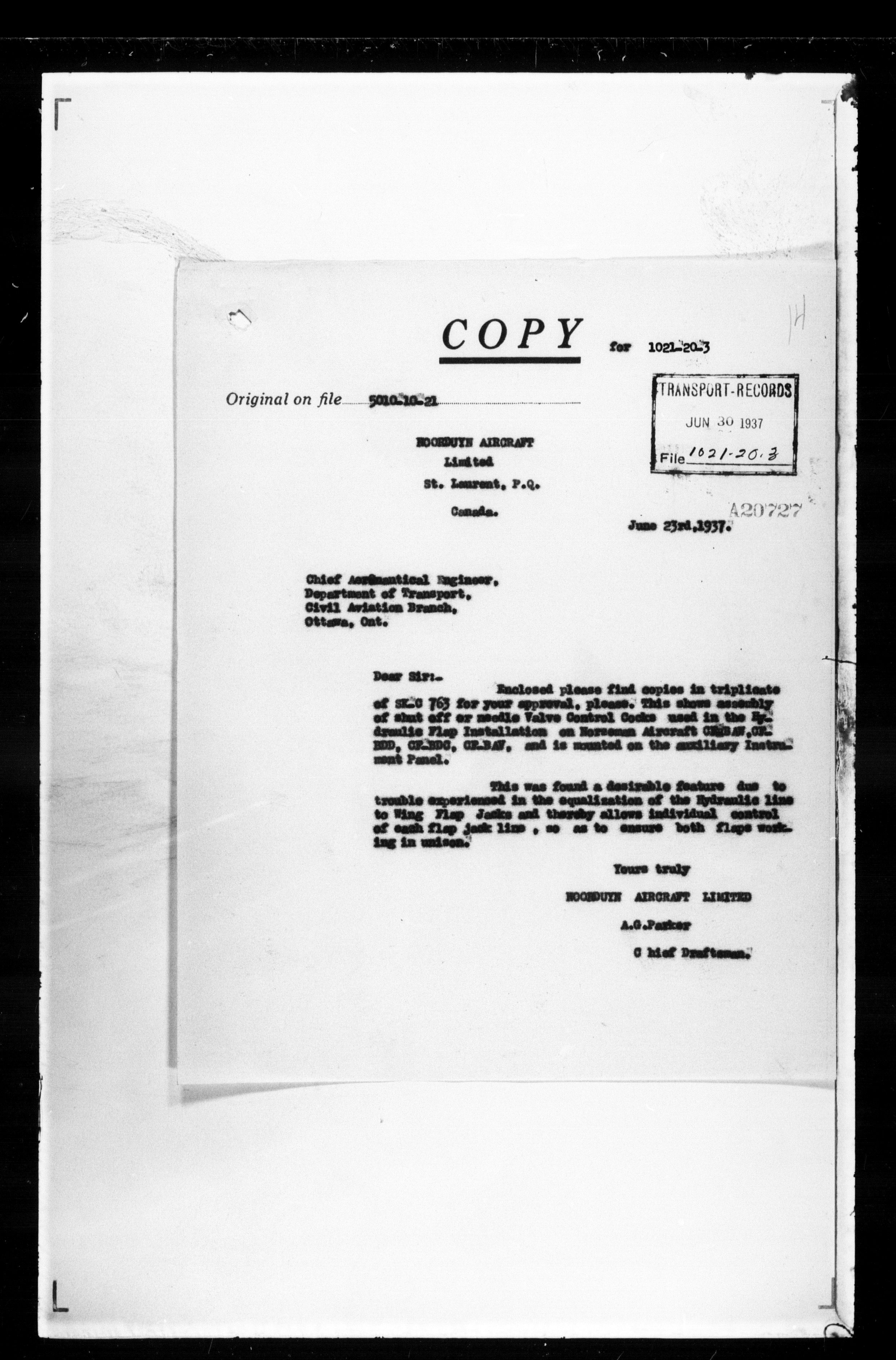 Department of Transport : Civil aircraft registration, inspection and operation files, block 5008, 1920-1986 - 7451