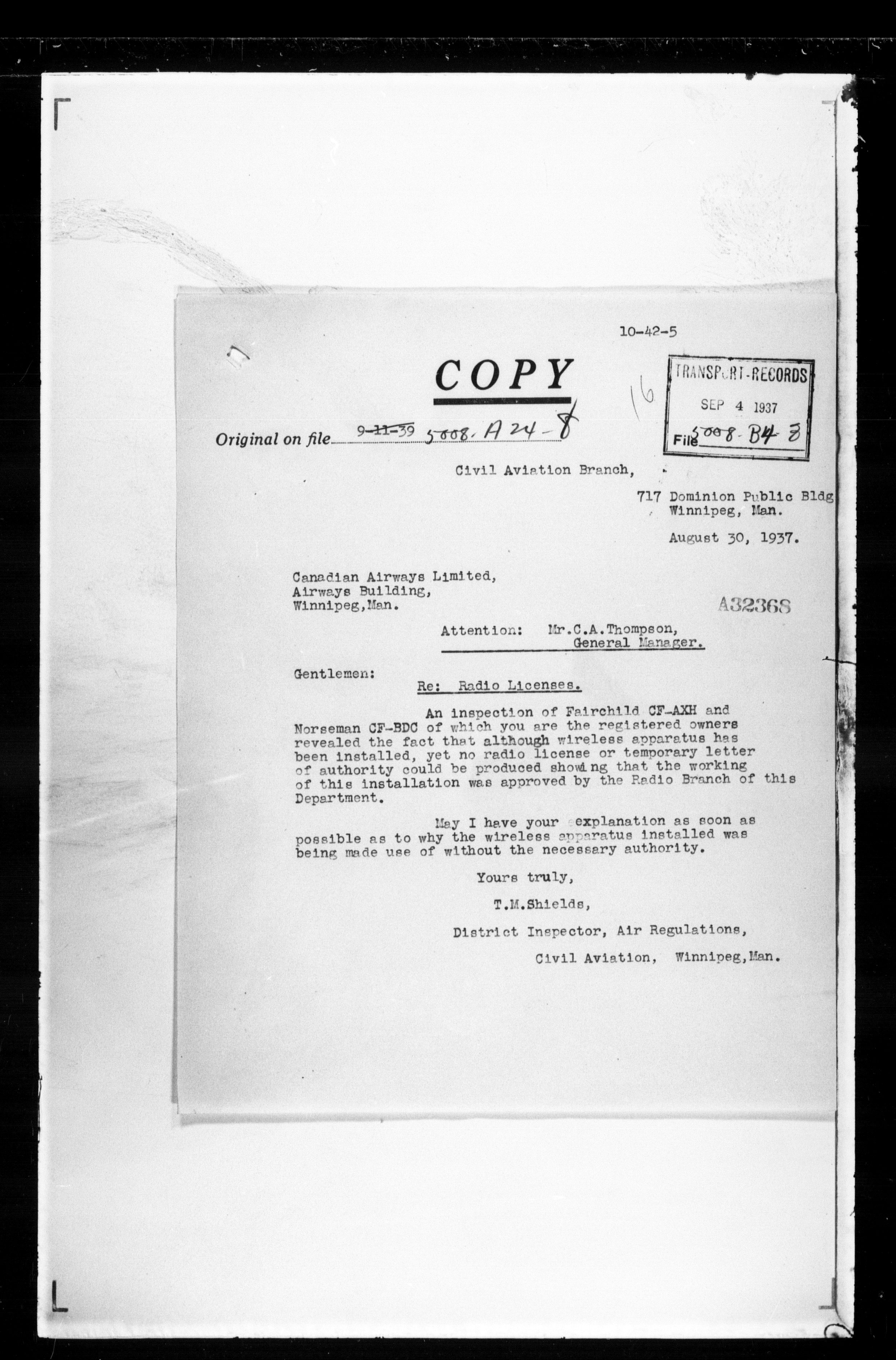 Department of Transport : Civil aircraft registration, inspection and operation files, block 5008, 1920-1986 - 7451
