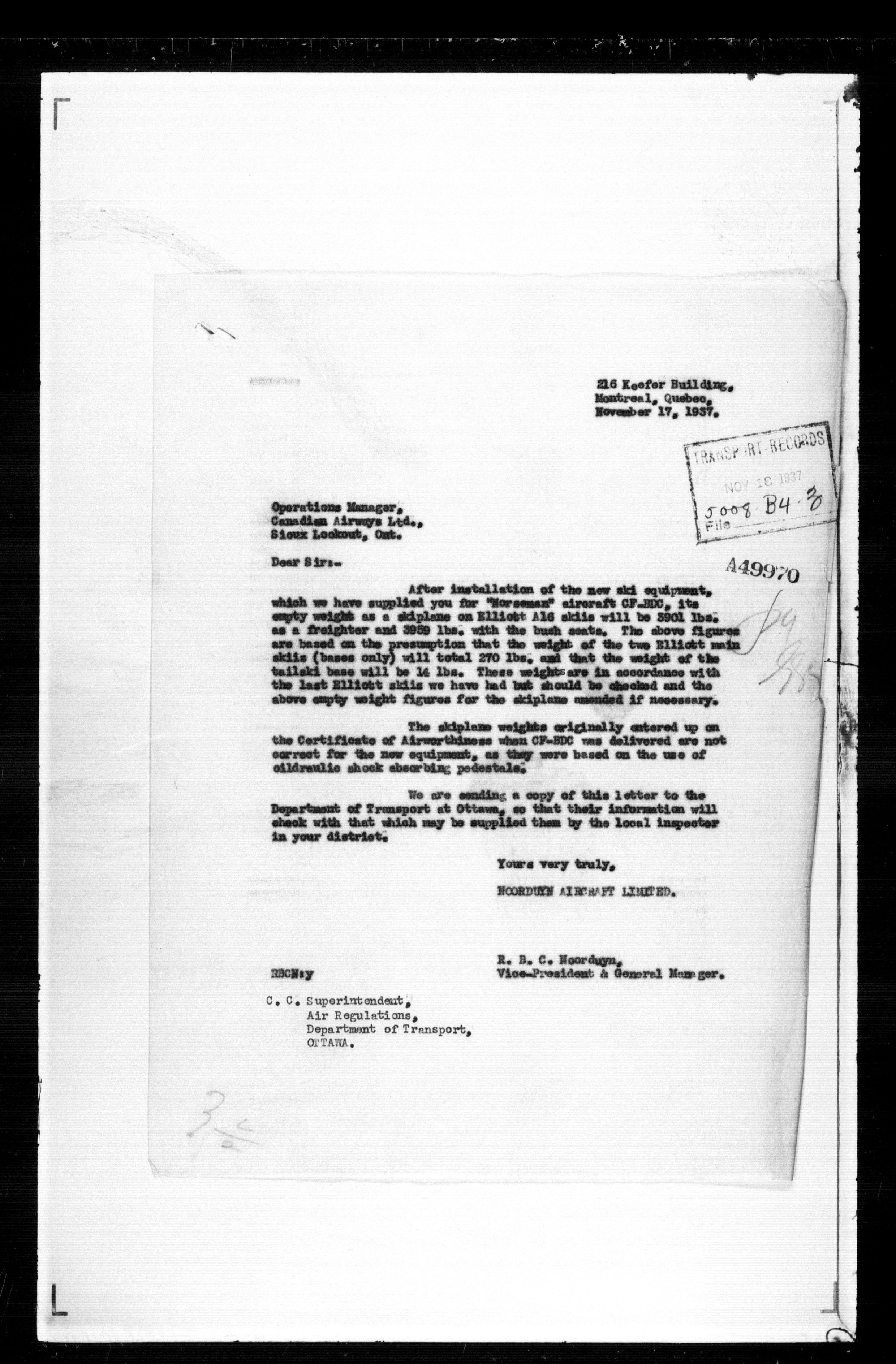 Department of Transport : Civil aircraft registration, inspection and operation files, block 5008, 1920-1986 - 7451