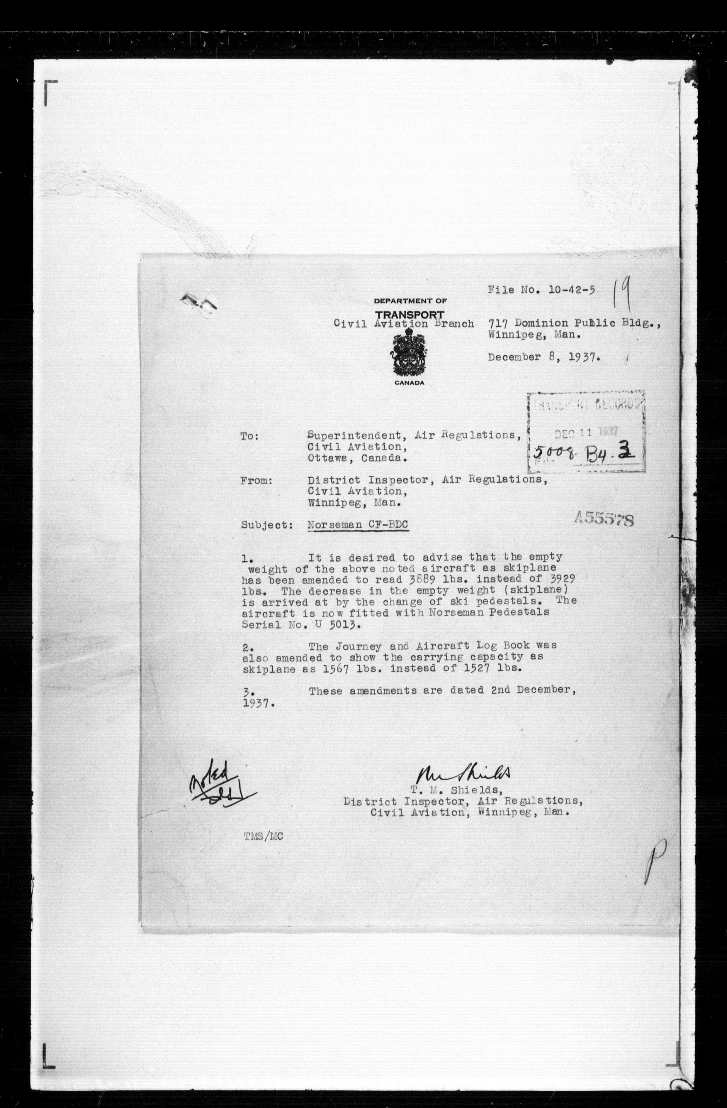 Department of Transport : Civil aircraft registration, inspection and operation files, block 5008, 1920-1986 - 7451