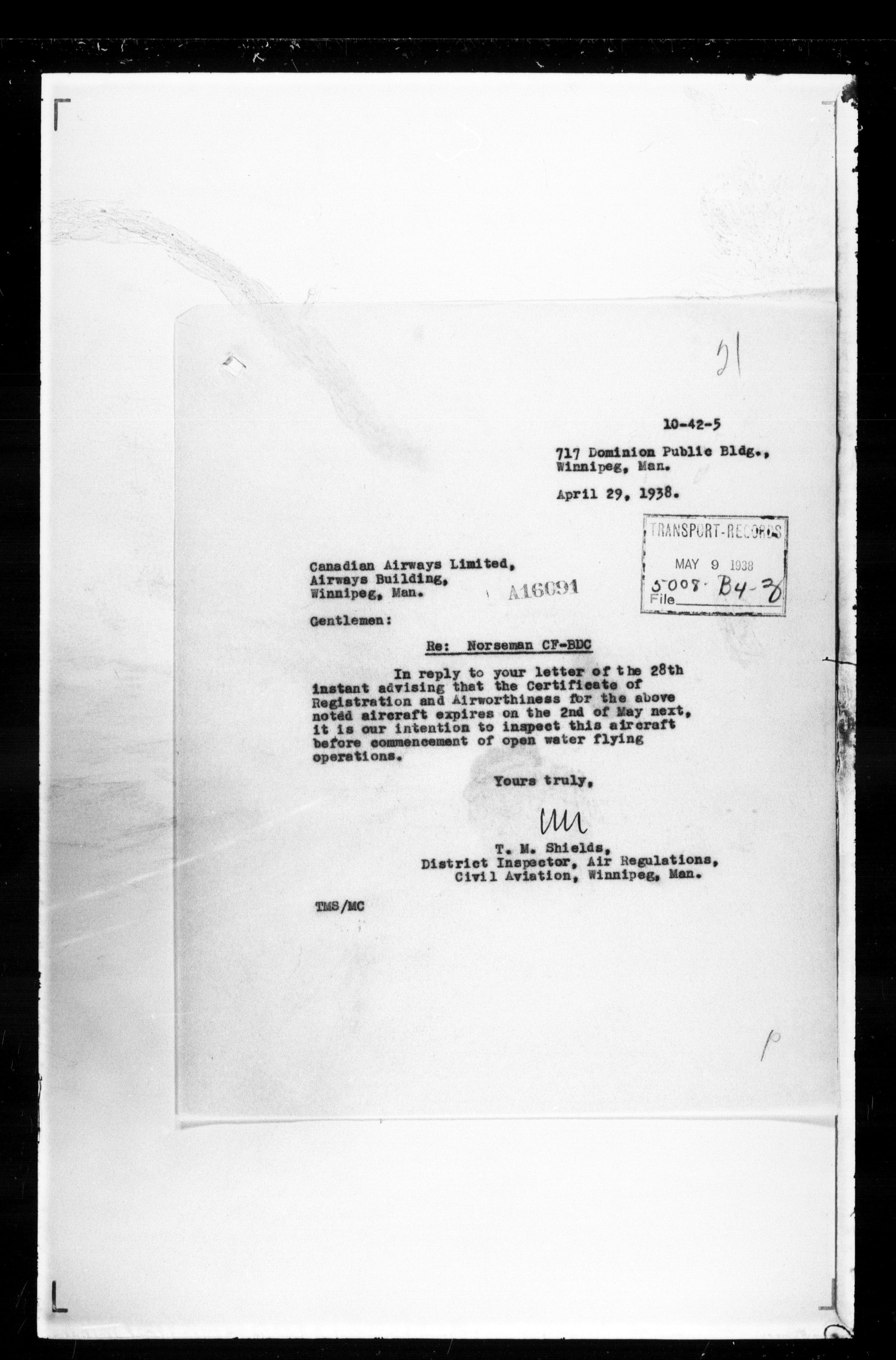 Department of Transport : Civil aircraft registration, inspection and operation files, block 5008, 1920-1986 - 7451