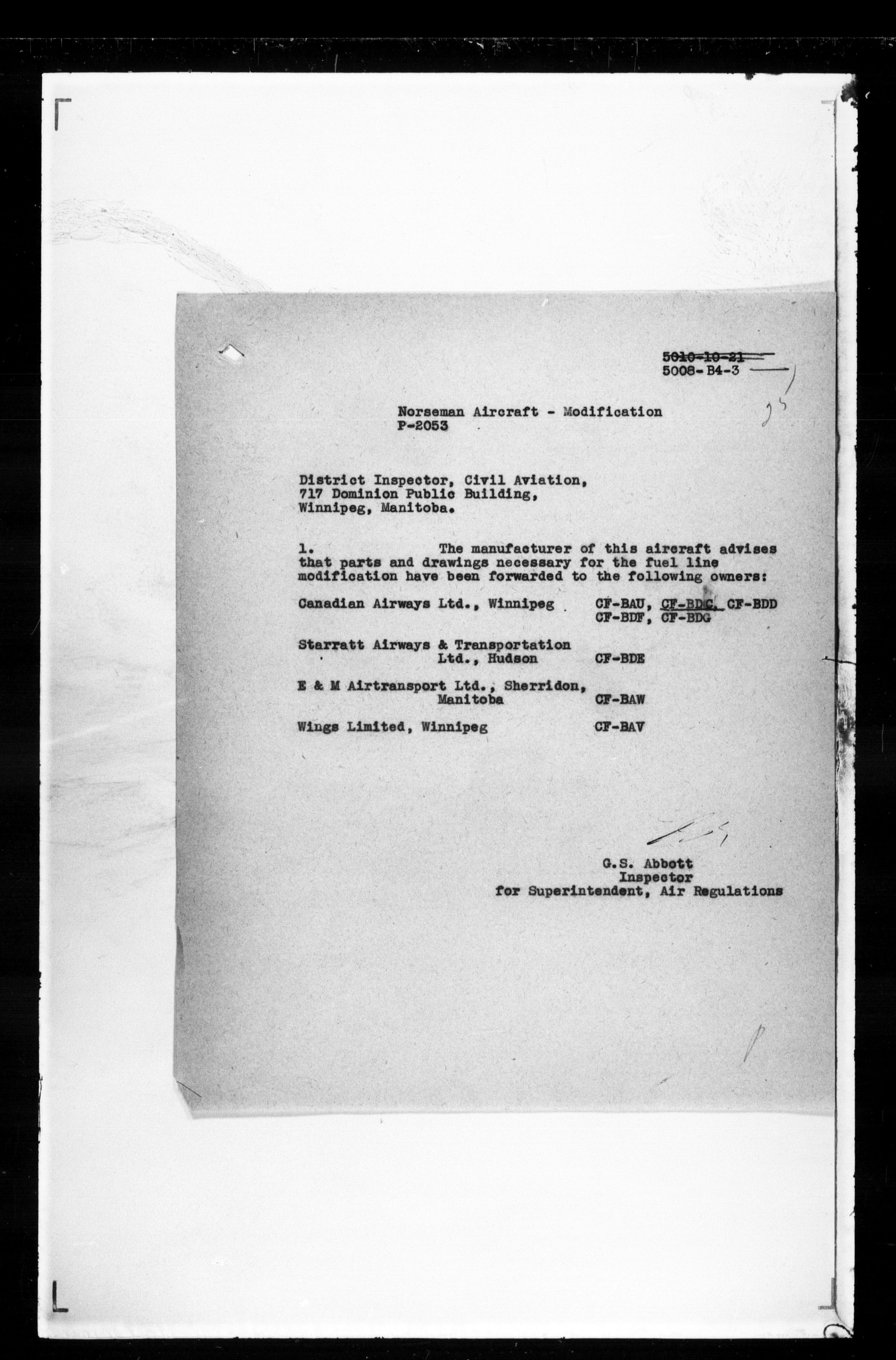Department of Transport : Civil aircraft registration, inspection and operation files, block 5008, 1920-1986 - 7451